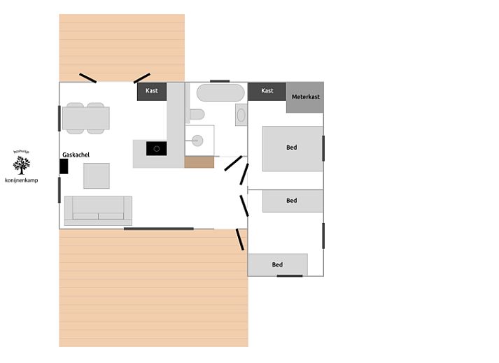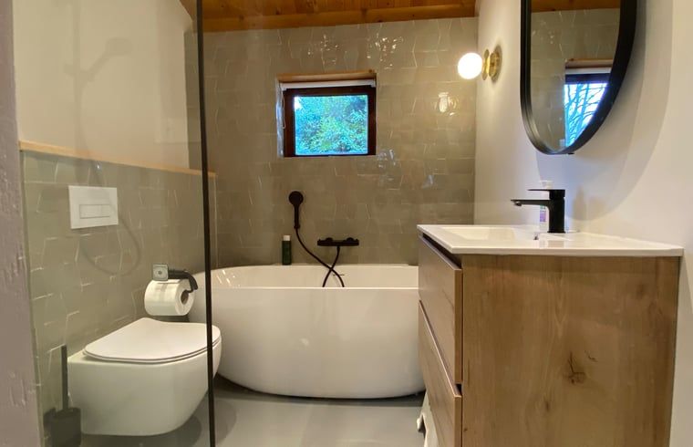 Le bungalow indépendant, entièrement rénové en 2023, est situé au début d'un chemin de terre sur un terrain spacieux (>800m2). Il s'agit d'un terrain privé (pas d'un parc de vacances). Depuis le bungalow, vous bénéficiez d'une vue imprenable. Vous pouvez marcher directement dans les bois ou jusqu'au centre de Beekbergen. La nouvelle cuisine est équipée d'un four, d'une machine à nespresso et d'une plaque à induction. Il y a deux chambres à coucher, l'une avec un lit double. L'autre chambre dispose de trois lits simples. Un lit de camp est également disponible. La maison est bien isolée et est chauffée par une cheminée à gaz dans le salon et un chauffage par le sol dans toute la maison. Le Wi-Fi est également disponible. À l'avant se trouve une véranda partiellement couverte, d'où l'on peut voir les prairies jusqu'à l'orée des bois. Des chaises de jardin confortables et des chaises longues sont fournies. Il y a une aire de jeux avec des balançoires, une maison, un toboggan et un bac à sable. Veuillez noter que cette maison de vacances n'est pas louée aux groupes d'amis.