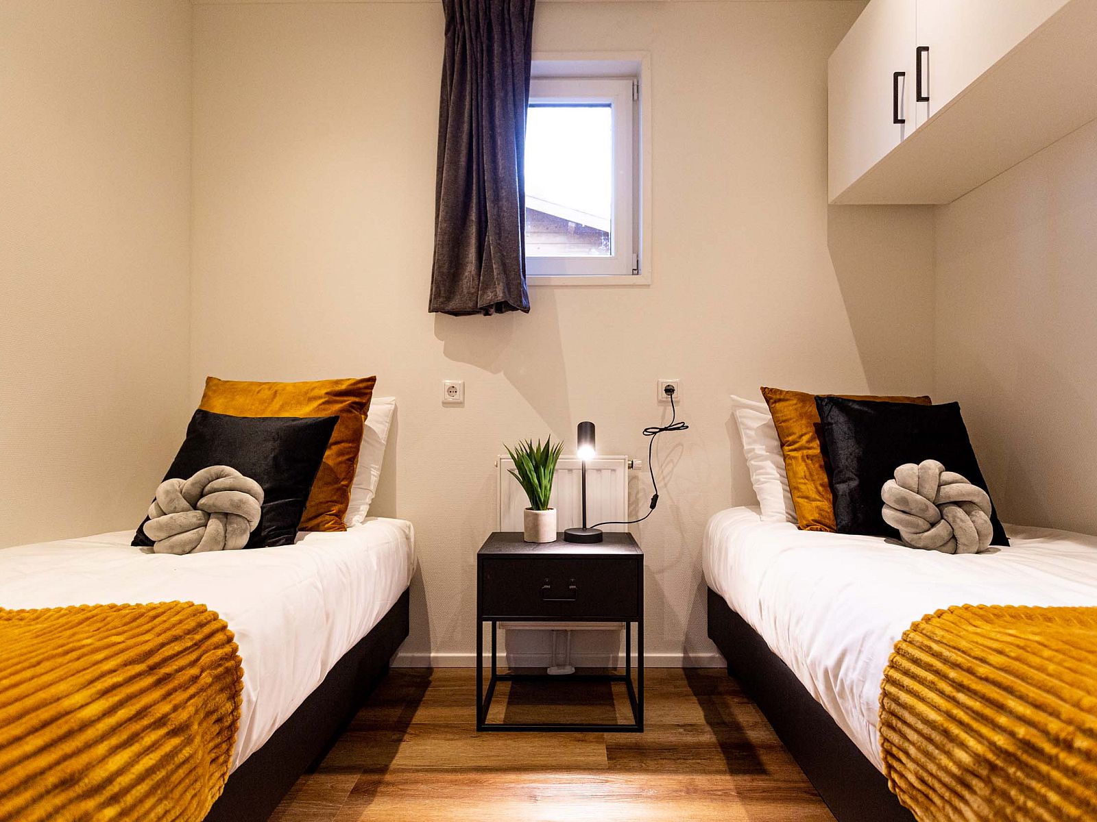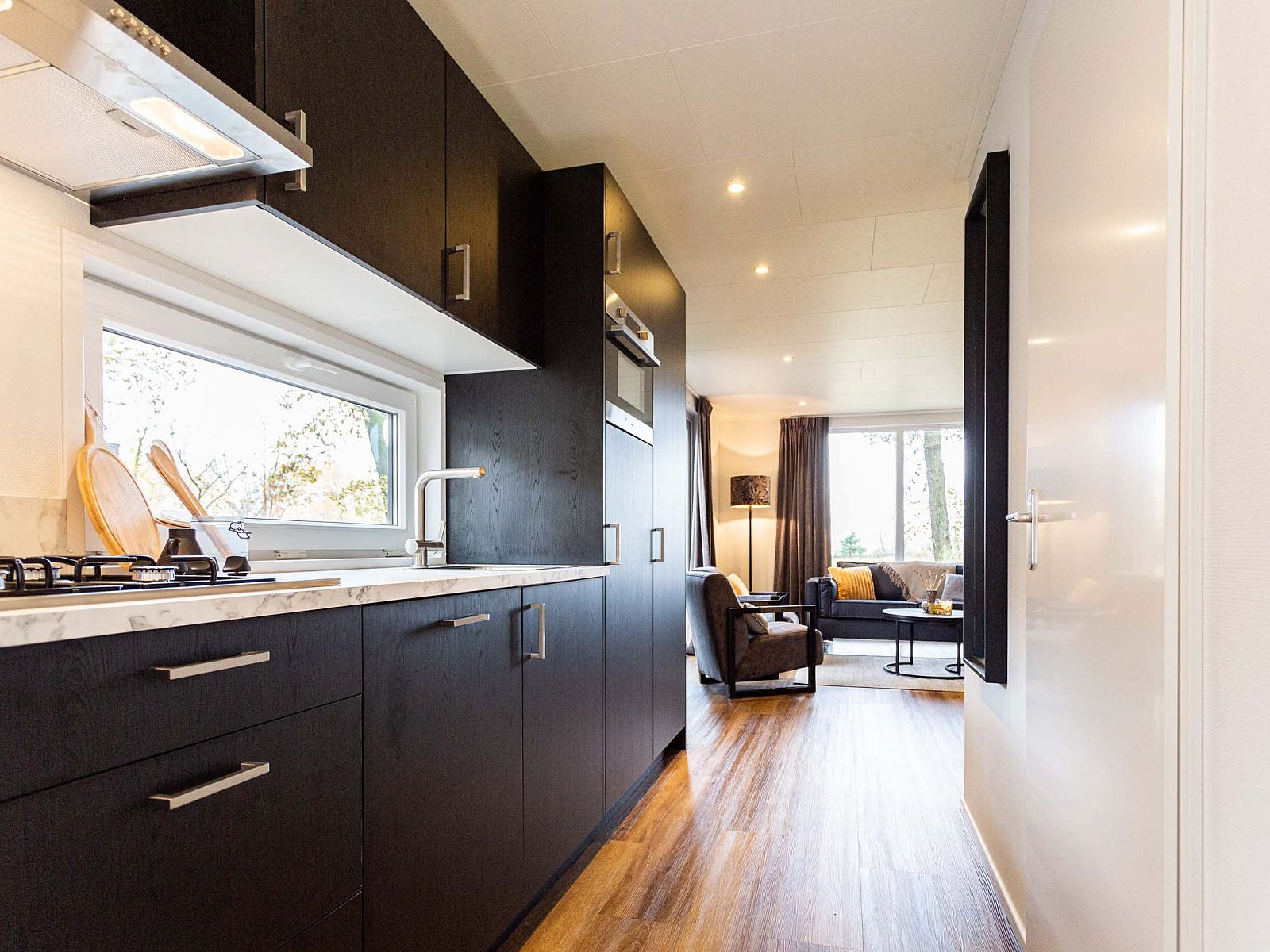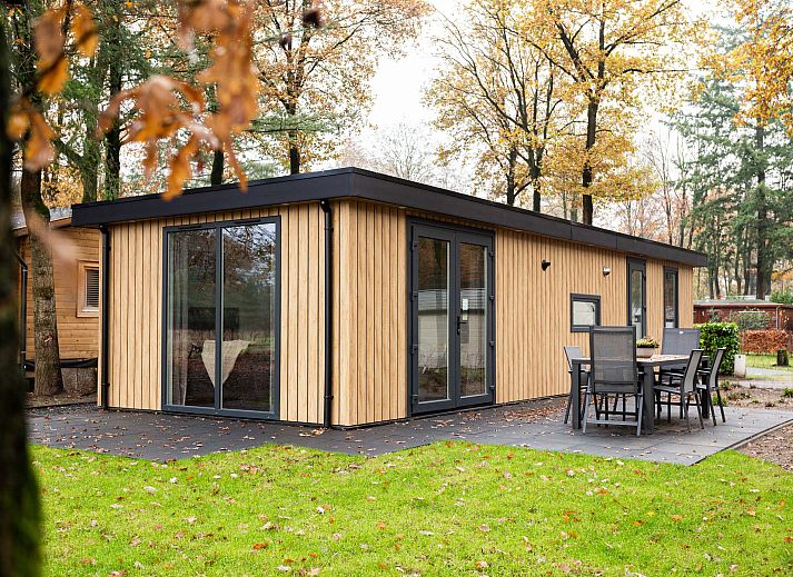 Uniquement disponible sur le terrain à louer. Description Le Module Wood est une maison de vacances confortable pour 4 personnes. Les matériaux durables et en bois, tant à l'intérieur qu'à l'extérieur, donnent à la maison un aspect élégant. Cette combinaison crée également une atmosphère apaisante dans la maison. Les hautes fenêtres apportent également beaucoup de lumière naturelle, ce qui rend les pièces encore plus spacieuses. Le module Wood comprend une salle de séjour lumineuse avec un mobilier accueillant (de votre choix). À côté du salon et de la salle à manger se trouve la cuisine ouverte, qui dispose de divers équipements modernes. La salle de bains est équipée d'une douche à l'italienne, de toilettes et d'un lavabo avec tiroirs de rangement. À côté de la salle de bains, vous trouverez deux chambres à coucher avec des lits à sommier et des armoires fonctionnelles. Autour de la maison de vacances se trouve un jardin spacieux avec sa propre terrasse, à laquelle on accède facilement par la porte arrière ou par les portes-fenêtres du salon. Bien entendu, la maison dispose de sa propre place de parking.