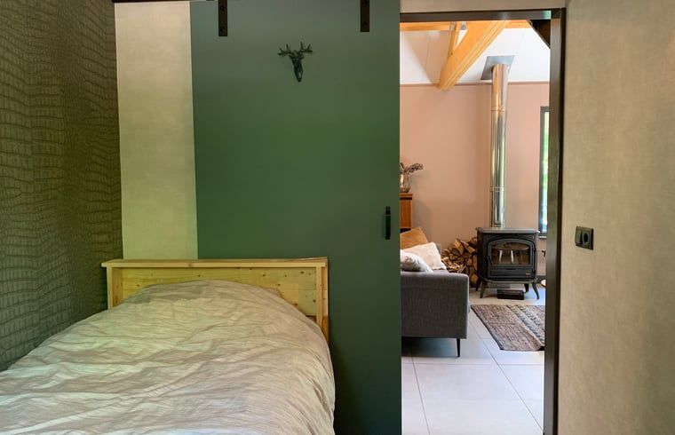 De nombreux animaux sauvages vivent dans le Kroondomein het Loo et les chances d'apercevoir un cerf, un sanglier ou un chevreuil sont très élevées. En bordure de ce Kroondomein, à la périphérie d'Emst, se trouve notre Boshuus "NOEST" sur un petit parc forestier. L'idée de construire une maison dans ce petit parc est née de nos propres besoins. NOEST mesure 70 mètres carrés d'originalité, est entièrement isolée, dispose d'un chauffage central et d'un chauffage partiel par le sol et, pour les amateurs, d'un poêle à bois ! Le séjour avec cuisine ouverte est doté de portes-fenêtres, ce qui permet de pénétrer directement dans la nature depuis l'intérieur. La cuisine est entièrement équipée. La salle de bains dispose d'une belle douche avec robinet thermostatique et chauffage au sol. Au rez-de-chaussée se trouvent 2 chambres : 1 chambre avec un sommier double (160 x 200 cm.), 1 chambre avec un lit simple (90 x 200 cm.). Dans le grenier spacieux, il y a deux lits simples (90 x 200 cm.). À l'extérieur, vous trouverez plusieurs endroits dans notre jardin pour vous amuser. En bref, c'est l'endroit idéal pour se détendre !