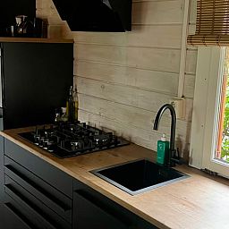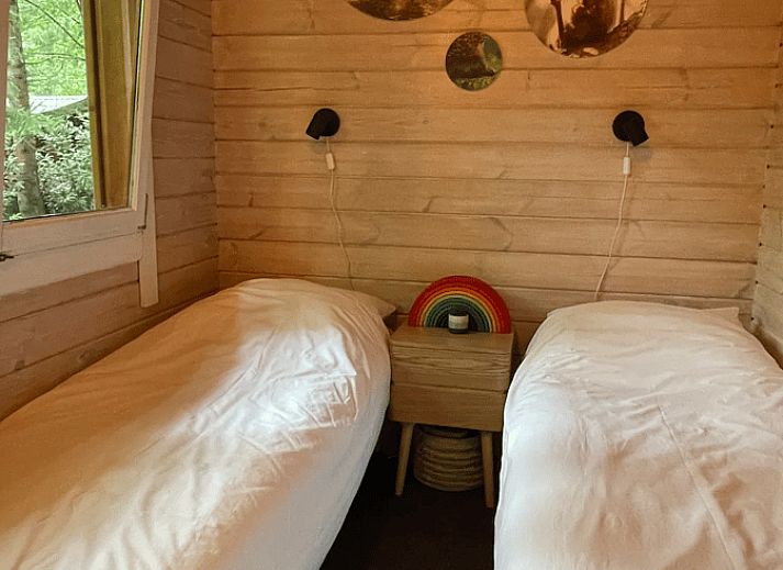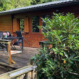 Notre chalet en bois (40 m2) est situé au milieu des arbres dans un petit parc de vacances tranquille, dans la section du parc forestier.