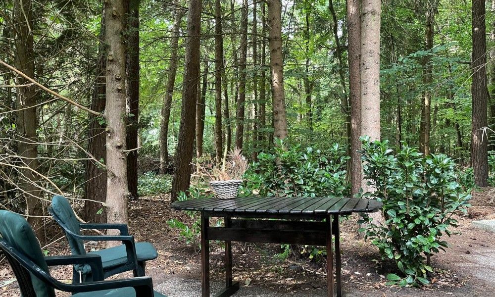 Détendez-vous dans notre charmant chalet forestier : un jardin de 1145 m² avec soleil et ombre, forêt, oiseaux, écureuils, de belles promenades accessibles à pied, des nuits noires = beaucoup d'étoiles, un piano, une nouvelle cuisine avec four, un coin repas confortable, trois chambres avec lavabos privés, deux places de parking, une salle de bains et des toilettes séparées — bref : un endroit pour se détendre !
