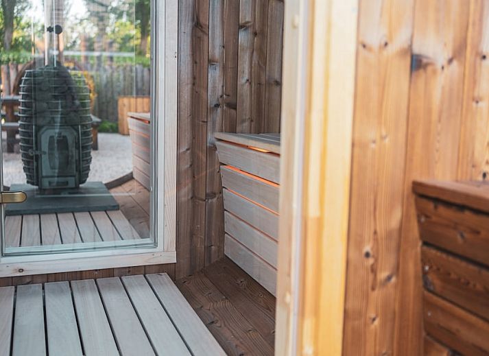 Ce Sauna Outdoor Suite indépendant convient à 2 adultes. On accède à la porte d'entrée par un petit escalier qui s'ouvre avec l'application Cuber. Depuis le coin salon de la salle de séjour, vous avez une vue sur la nature. Profitez d'un son riche qui remplit la pièce avec le Sonos One SL et jouez votre musique préférée avec l'application Sonos, AirPlay 2 et plus encore. La cuisine ouverte comprend un lave-vaisselle, un four à micro-ondes et une machine à café. La salle de bains avec toilettes et douche à l'italienne avec plafond en verre permet d'accéder à la chambre à coucher. Vous y trouverez un lit double king-size. Sous le lit se trouve un tiroir pour ranger votre valise à l'abri des regards. Depuis l'Outdoor Suite Sauna, vous accédez à la terrasse, qui est équipée de mobilier de jardin. La terrasse est située sur le long côté ou à l'extrémité de la maison de vacances. Améliorez vos vacances en profitant d'une expérience de bien-être dans la nature. En effet, votre logement de vacances comprend un sauna extérieur à barils. Ce sauna luxueux se compose d'une véranda avec un coin salon, d'un vestiaire et du sauna lui-même. Le sauna mesure 2,10 mètres de long et dispose de 2 bancs. Il y a donc beaucoup d'espace ! De plus, le sauna est doté de grandes fenêtres, ce qui vous permet de profiter d'une vue panoramique sur la nature pendant votre moment de bien-être. Vous trouverez de la place pour votre voiture dans le parking central et un accès Wi-Fi gratuit. Extra sympa : via l'appli Cuber, vous pouvez commander l'éclairage, la climatisation et les stores, entre autres, sans avoir à vous lever.