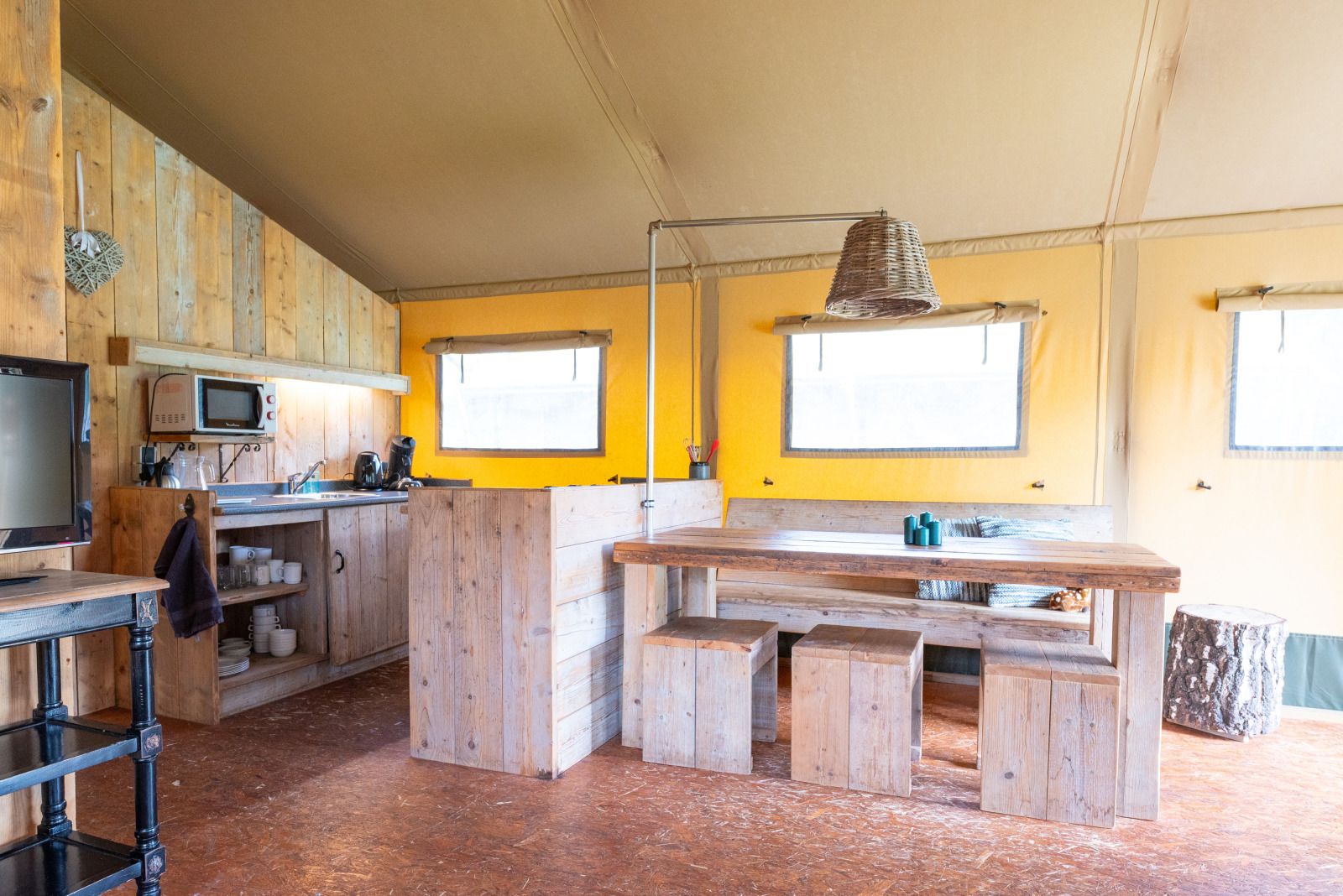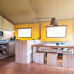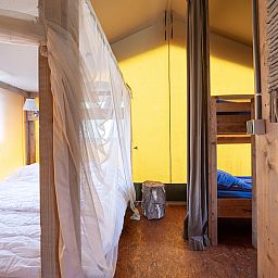 Découvrez le charme du camping et le confort d'un hébergement confortable et accueillant au Veluwecamping De Pampel. Ce Woodlodge offre tout ce qu'il faut pour un séjour relaxant : un coin salon confortable avec un canapé d'angle, une cuisine entièrement équipée avec une machine à café Senseo et un micro-ondes, et des toilettes privées. Le lit double romantique à baldaquin avec moustiquaire garantit une bonne nuit de sommeil, tandis que les lits superposés sont idéaux pour les enfants. Lors des soirées plus fraîches, le poêle à gaz apporte chaleur et atmosphère. La véranda couverte avec table de pique-nique permet de profiter de l'extérieur en toute tranquillité. Sa situation à la périphérie de Hoenderloo, au milieu de la nature du Veluwe, facilite les promenades et les explorations depuis le camping, avec des villes comme Apeldoorn et Arnhem à une courte distance.