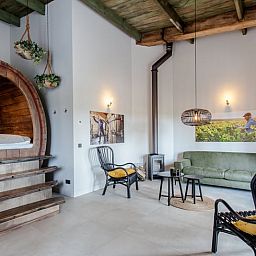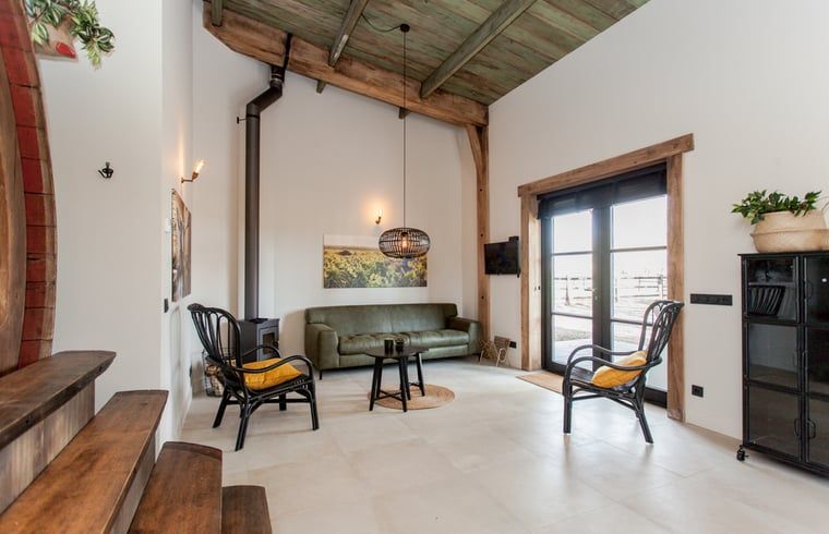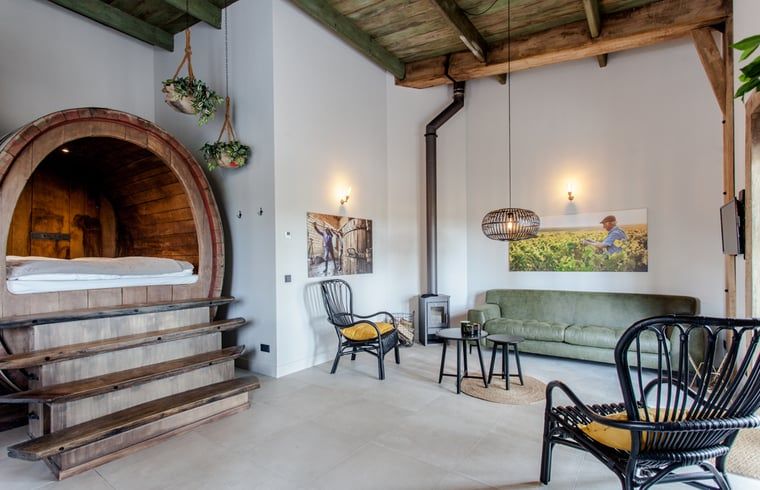 Imaginez que vous dormiez dans un joli lit dans un ancien tonneau de vin de 7000 litres. Les enfants peuvent jouer et câliner les animaux dans l'aire de jeux et le pâturage autour de votre maison de vacances ou avec les jouets d'intérieur. Dans les environs, vous pourrez découvrir une nature magnifique, de charmants villages et de jolis lacs de baignade. Au coucher du soleil, dégustez un verre de vin sur votre terrasse privée, avec vue sur le vignoble... Cela vous semble être le séjour idéal pour vos vacances ou votre week-end ? Dans ce cas, vous êtes le bienvenu au Wine Lodge de la Welgelegen Wine Farm à Kootwijkerbroek ! Découvrez la lenteur de la vie à la campagne et venez faire l'expérience du luxe discret du Wine Lodge. Cette luxueuse maison pour 6 personnes comprend un salon avec un "lit tonneau" pour 2 personnes, une chambre séparée avec 4 lits fixes, des toilettes, une salle de bains avec douche et baignoire et une cuisine spacieuse avec de nombreux appareils électroménagers et un îlot pour s'asseoir.