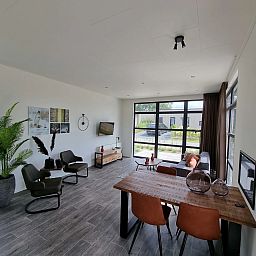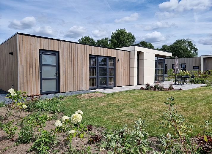 Cube Maximaal - De Cube Maximaal is een moderne en duurzame woning met zijn warmtepomp en zonnepanelen. De woning is gelijkvloers en geschikt voor 4 personen. De lichte woonruimte beschikt over een gezellige zithoek, een eettafel met stoelen en een keuken met onder andere een filter koffiezetapparaat, combimagnetron en vaatwasser. Het chalet heeft 2 slaapkamers, waarvan 1 met een tweepersoonsbed en 1 met 2 eenpersoonsbedden. Er is een badkamer met een inloopdouche en een wastafel. Het toilet is apart van de badkamer. Buiten bevindt zich een gemeubileerd terras. Er is plek voor 1 auto bij de vakantiewoning.