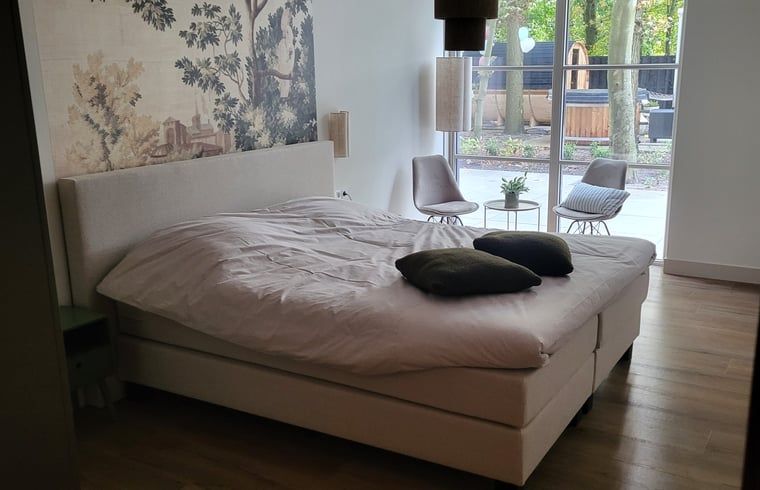 Cachée parmi les arbres sur un terrain privé de 2500m2 à la tête du Veluwe, se trouve cette toute nouvelle villa de vacances de luxe qui ouvrira ses portes en novembre 2025.
