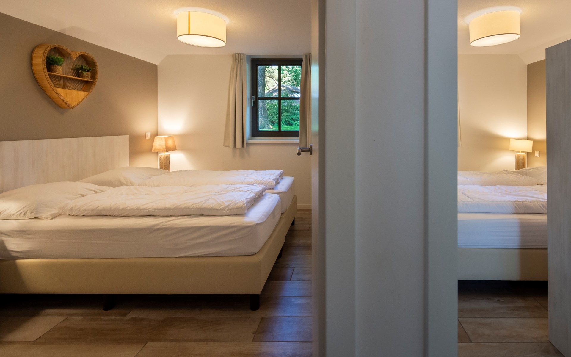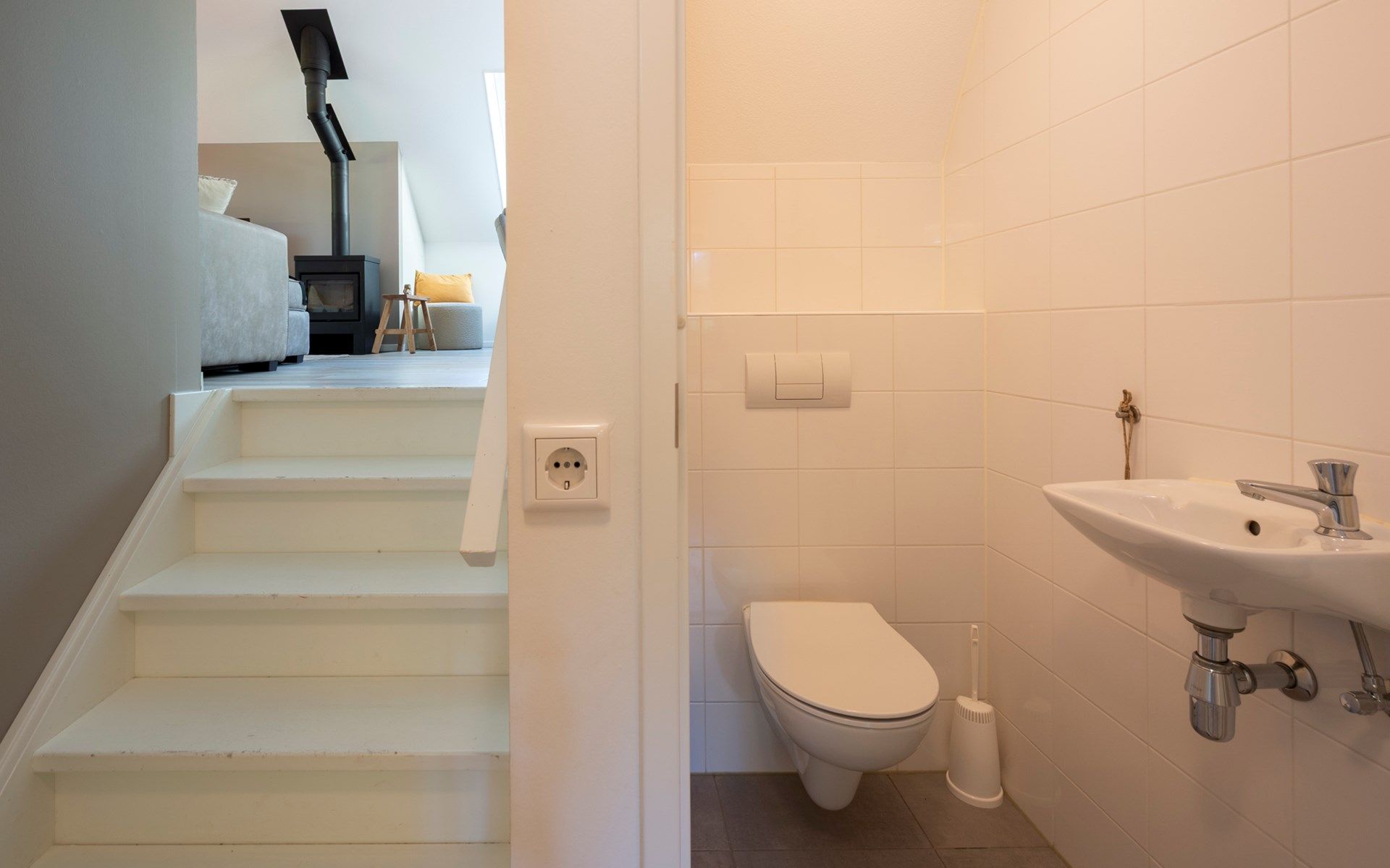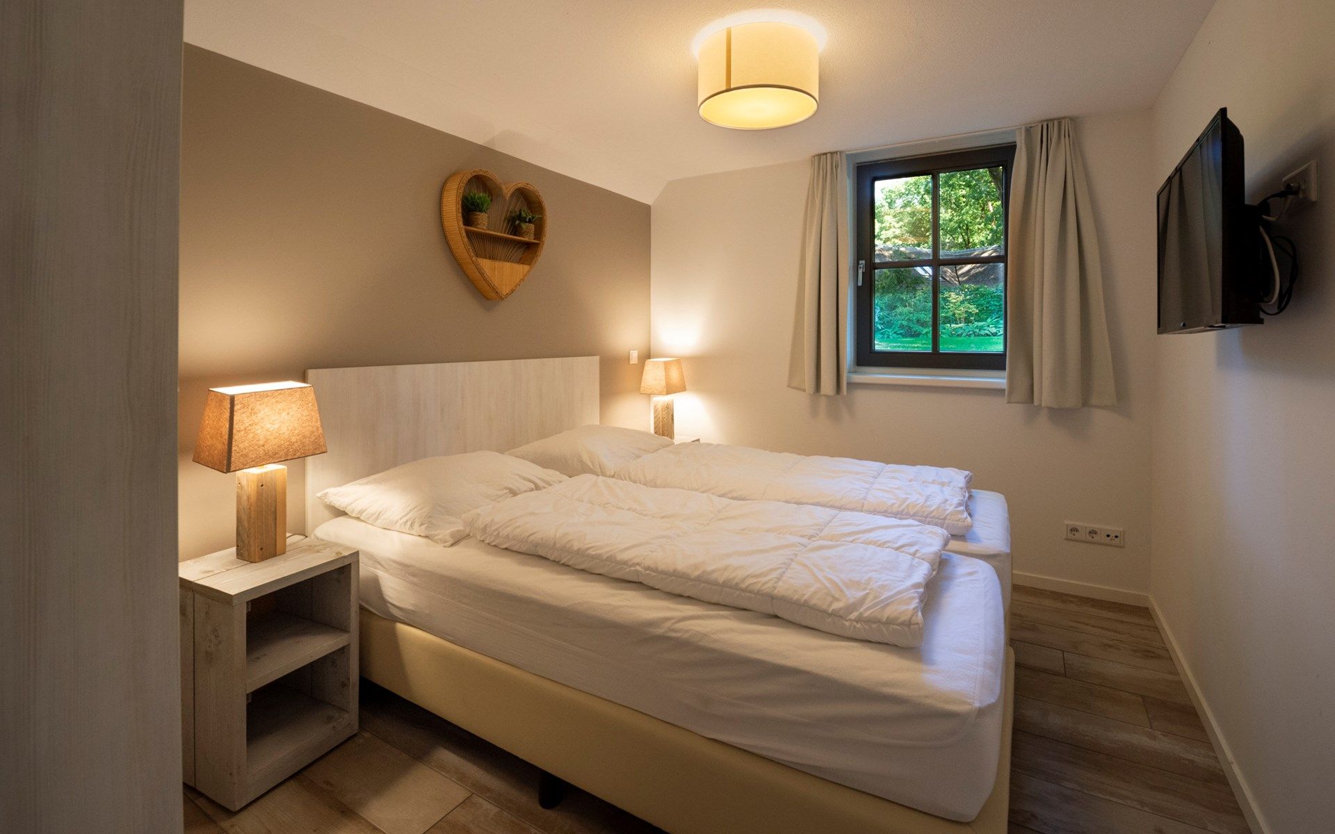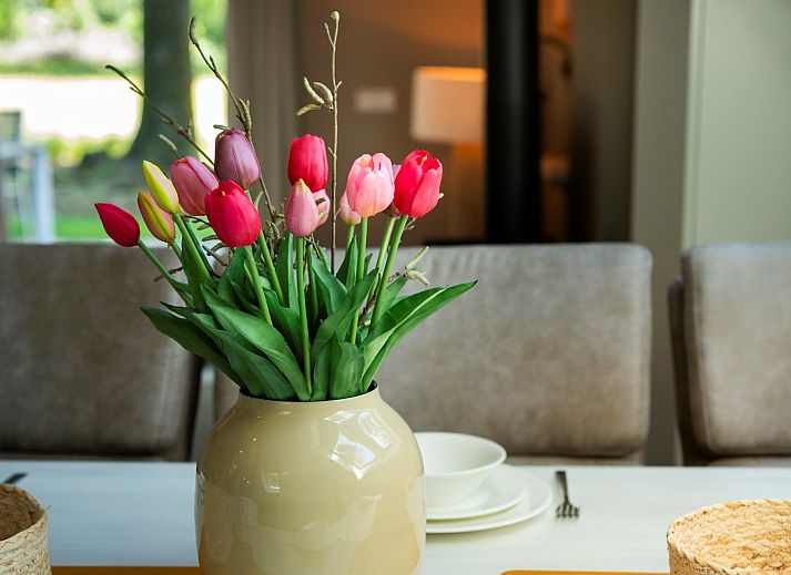Cette maison à deux niveaux construite dans le style de Gelderland présente un intérieur élégant avec un coin salon, un coin salle à manger et une luxueuse cuisine ouverte au premier étage qui respirent la forêt. Le feu de bois apporte chaleur et atmosphère pendant les jours les plus froids. Les portes-fenêtres permettent d'accéder directement au jardin et à la terrasse. A l'étage où vous entrez, il y a deux chambres, la salle de bain et les toilettes. Deux niveaux plus haut, vous trouverez la plus grande chambre de la maison.