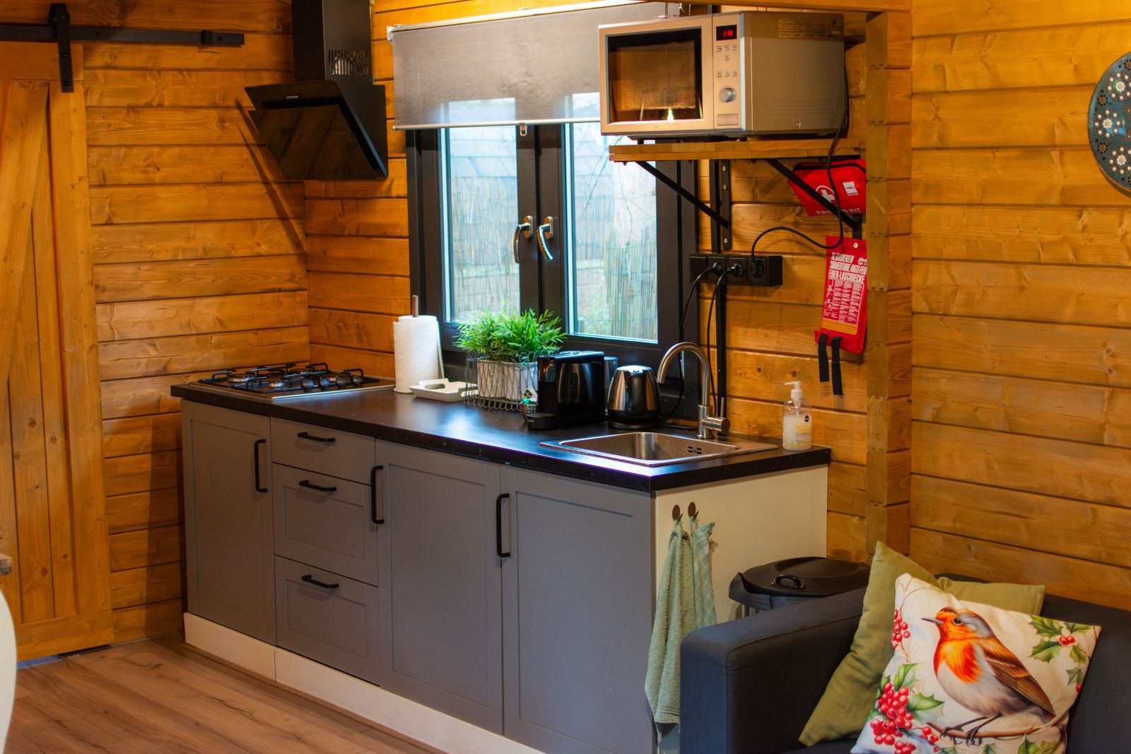Cette maison de vacances offre un hébergement confortable et tranquille pour cinq personnes et est idéale pour les familles ou les petits groupes d'amis. Le chalet situé dans le parc de loisirs De Eyckenhoff à Putten combine un intérieur moderne avec beaucoup de lumière à travers les grandes fenêtres. Le jardin bien entretenu avec des meubles de salon garantit une grande intimité. À l'intérieur, le chalet dispose d'une cuisine complète, d'un coin salon confortable et du wifi gratuit. Sa situation au milieu des forêts, des landes et des prairies lui confère un caractère particulier. Des écureuils et des oiseaux sont régulièrement observés dans le jardin. Le chalet dispose d'installations sanitaires rénovées, d'un abri pratique pour les vélos et d'un parking privé. Il n'y a pas d'installations centrales dans le petit parc, ce qui contribue à l'atmosphère paisible. De belles promenades à pied et à vélo sont possibles directement depuis le chalet. Le centre de Putten, le palais Het Loo, le musée Kröller Müller, l'Apenheul, le lac Veluwe et Walibi Holland se trouvent à proximité.