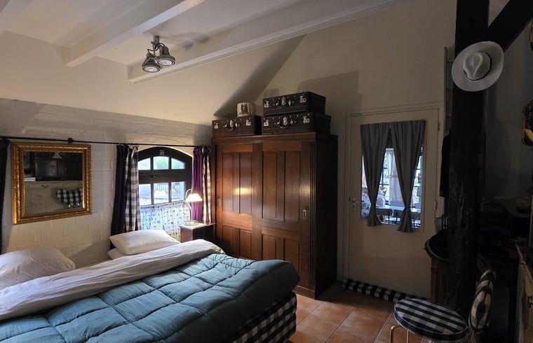 Notre gîte rural est un appartement situé dans une ferme centenaire. Situé sur une petite route tranquille, vous pouvez facilement accéder à notre grand parking. Une fois à l'intérieur, vous découvrirez un décor coloré, où nous avons mélangé le moderne et le classique, car sans passé, il n'y a pas d'avenir. Deux longues tables à manger entourées de chaises et de bancs vous accueillent immédiatement. À gauche se trouve notre cuisine, que vous pouvez également utiliser. L'appartement se trouve au premier étage. À droite du salon, l'escalier mène à l'étage où vous pouvez ranger vos manteaux sur le portemanteau dans le couloir. Une porte verrouillable donne accès à l'appartement. Spacieux, avec plusieurs coins salon, une télévision, un lit double et une table à manger. Une cuisinière et une cafetière sont également à votre disposition. Salle de bain privée avec lavabo, toilettes et douche. Tout est prévu pour deux personnes, mais il est bien sûr possible de créer des couchages supplémentaires pour les enfants grâce à un canapé-lit et/ou un matelas. Nous avons également un lit bébé.