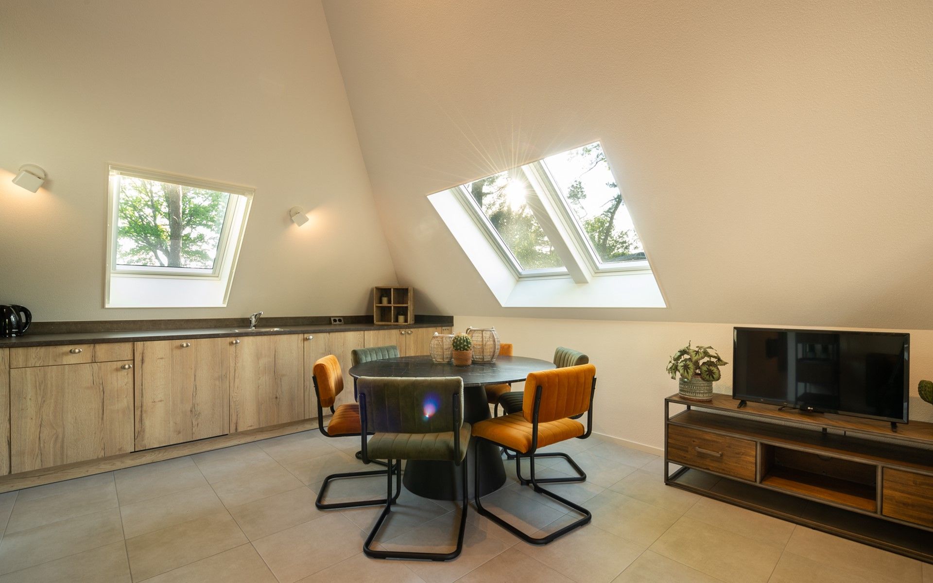 La maison est de type "Berkenhorst", joliment meublée avec soin. La cuisine ouverte avec sa structure en bois est chaleureuse et luxueuse. La table à manger ronde permet de déguster un repas et/ou des boissons en toute convivialité. Équipé de 3 chambres à coucher, 6 personnes peuvent profiter du salon spacieux. L'une des chambres dispose d'une télévision. Bien entendu, une salle de douche moderne et des toilettes séparées ne manquent pas non plus. Les chambres et le salon sont équipés de moustiquaires.