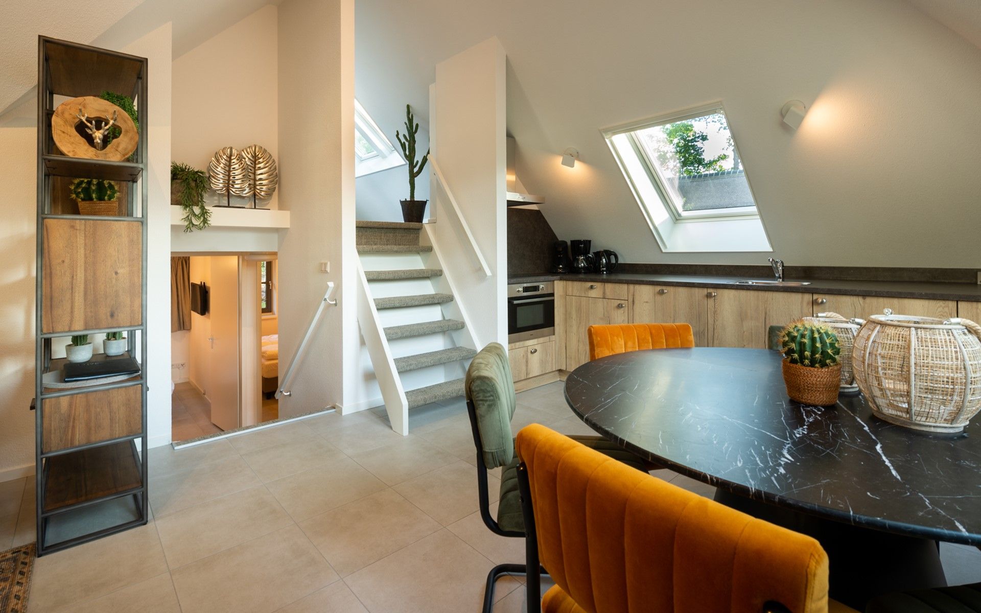 La maison typique de Veluwe se trouve sur un terrain spacieux de 700 m2, ce qui vous donne plus que suffisamment d'intimité dans le jardin boisé joliment aménagé. Le jardin est entouré d'une clôture à moutons. Il y a également un trampoline pour les enfants ! Il y a un grand parking sur place pour 2 voitures et des points de recharge pour les vélos électriques et les voitures ont également été envisagés.