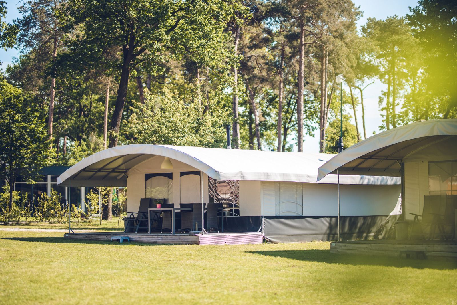 Dormez dans une villa moderne et luxueuse avec les enfants pour de vraies vacances "glamping". Avec une salle de bain, une cuisine et une terrasse, vous ne manquerez de rien.