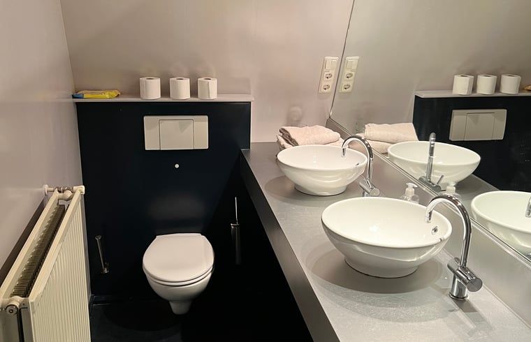 La luxueuse salle de bains à l'étage est équipée d'un double lavabo et d'une douche à l'italienne avec deux douches. Les draps et les serviettes sont fournis. En bas, vous trouverez une cuisine entièrement équipée avec réfrigérateur, cuisinière/four, Nespresso et grille-pain. La salle à manger et le salon spacieux, avec une salle de cinéma, permettent de se détendre le soir.