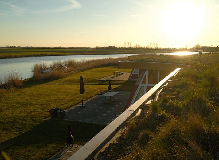 En été, vous pouvez vous asseoir sur la grande terrasse et regarder le Reitdiep. En hiver, vous pouvez voir le soleil se lever sur le pont à l'est depuis la table de la cuisine et se coucher sur le Reitdiep et la belle campagne de Groninger à l'ouest à la fin de l'après-midi.