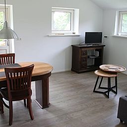 La maison d'hôtes est construite à l'arrière de la belle ferme des propriétaires. Elle jouit donc d'une grande tranquillité et d'une grande intimité et offre une belle vue sur les champs environnants. Le grand jardin offre de nombreuses possibilités de passer du temps à l'extérieur. À cet effet, une grande table de pique-nique en bois, robuste, avec des bancs en bois (pas de chaises de jardin) a été placée sous le vieux chêne. L'appartement peut accueillir deux personnes. Il est meublé de façon moderne et comprend une chambre à coucher, une cuisine ouverte sur le salon et une salle de bains moderne.