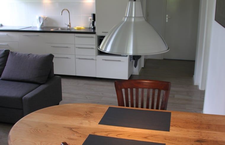 La maison d'hôtes est construite à l'arrière de la belle ferme des propriétaires. Elle jouit donc d'une grande tranquillité et d'une grande intimité et offre une belle vue sur les champs environnants. Le grand jardin offre de nombreuses possibilités de passer du temps à l'extérieur. À cet effet, une grande table de pique-nique en bois, robuste, avec des bancs en bois (pas de chaises de jardin) a été placée sous le vieux chêne. L'appartement peut accueillir deux personnes. Il est meublé de façon moderne et comprend une chambre à coucher, une cuisine ouverte sur le salon et une salle de bains moderne.