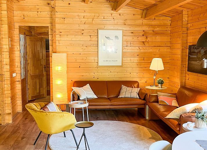 Chalet spacieux de haute qualité avec un grand salon et une cuisine ouverte. Coin salon confortable pour 5 personnes avec canapés en cuir et fauteuils. Grande table à manger avec suffisamment de place.