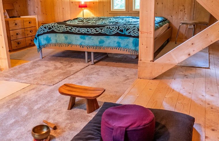 Nous avons construit notre gîte rural en 2023 dans un style scandinave. Il est situé dans la partie nord-ouest de notre terrain (>6000m2), entouré d'arbres. Il y a un jardin tranquille devant la véranda où vous pouvez profiter du silence, des oiseaux, et qui sait, peut-être que les cerfs viendront visiter le jardin. Un endroit agréable pour être tranquille, avoir une bonne conversation, lire un livre. Vous pouvez profiter de la vue sur les environs sur un banc ou une chaise au bord du terrain. Vous bénéficierez de toute l'intimité dont vous avez besoin. Le chalet est entièrement équipé. Le gîte naturel fonctionne à l'électricité. Vous pouvez cuisiner sur un réchaud à induction. Le chauffage est assuré par un split-airco. Nous produisons de l'énergie avec nos panneaux solaires. Il y a une chambre au rez-de-chaussée avec un lit double qui peut être transformé en deux lits jumeaux. Sur la mezzanine, il y a de la place pour faire de la méditation. Il y a aussi un lit, mais la mezzanine est ouverte et n'est accessible que par un simple escalier.