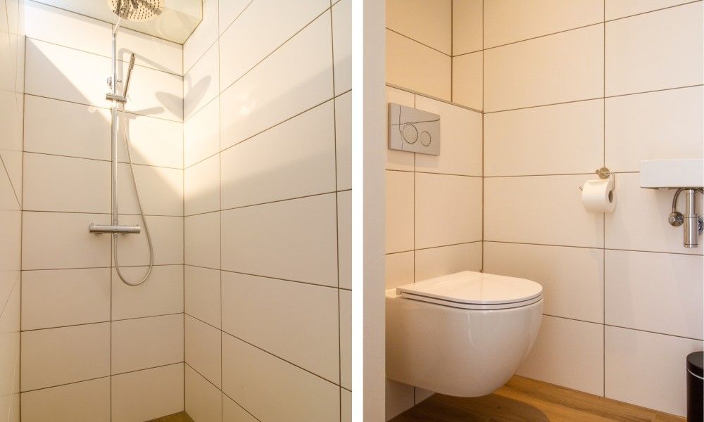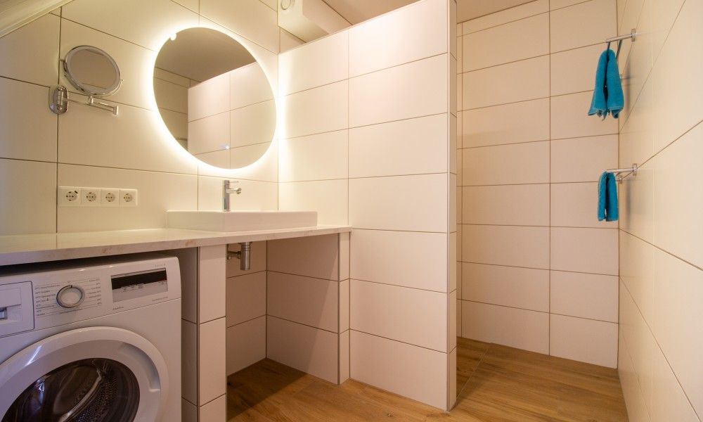 La salle de bains est équipée d'une douche à effet pluie. Une machine à laver est à votre disposition. Les toilettes se trouvent dans une pièce séparée.