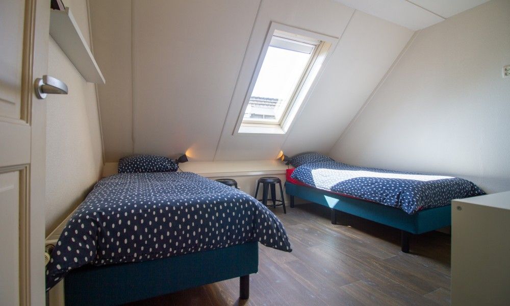 À l'étage, il y a deux chambres à coucher, chacune avec deux lits simples. Les lits sont faits lorsque vous emménagez dans l'appartement.