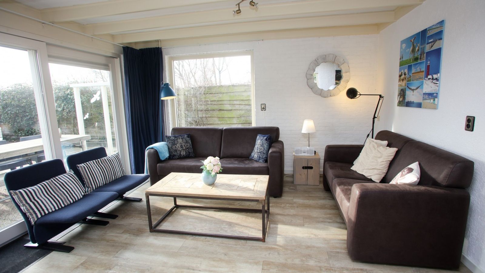 Le salon dispose d'un coin salon, d'une cheminée, d'une télévision, d'un DVD et d'un coin repas. La cuisine semi-ouverte est équipée d'une cuisinière à gaz, d'un réfrigérateur avec compartiment congélateur, d'un four à micro-ondes combiné et d'un lave-vaisselle. Au rez-de-chaussée se trouve une chambre à coucher avec un lit double à sommier tapissier (160 x 200). La salle de bains est équipée d'une douche à l'italienne, d'un lavabo et de toilettes. A l'étage se trouvent trois chambres, dont deux avec un lit double (160 x 200). La troisième chambre a één lit simple (chacun 90 x 200). Il y a une deuxième salle de bains avec douche, lavabo et toilettes, à laquelle on accède par la chambre simple. La maison de vacances Blom & ; Co peut accueillir six á ; sept personnes. Pour sept adultes, c'est un peu étroit. Il y a aussi deux lits de camping. La maison de vacances Blom & ; Co dispose d'un grand jardin clos où les chiens sont les bienvenus. Il y a une terrasse abritée avec un brise-vent. Des meubles de jardin sont disponibles.