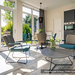 Ce chalet (type Lighthouse de Luxe) se trouve près du centre du Vakantiepark de Krim et à proximité des installations. Le chalet dispose de deux chambres à coucher, chacune avec sa propre salle de bain avec douche et toilettes. Il y a également un sauna infrarouge séparé. Le salon moderne est doté d'une grande porte coulissante qui donne l'impression d'être à l'extérieur. La cuisine est entièrement équipée. Le chalet dispose d'une place de parking privée et d'une terrasse pavée.