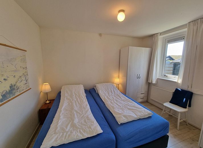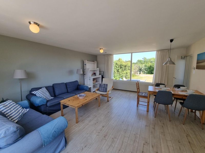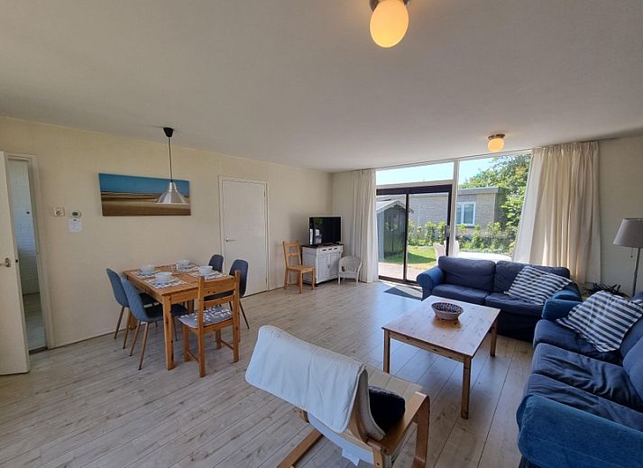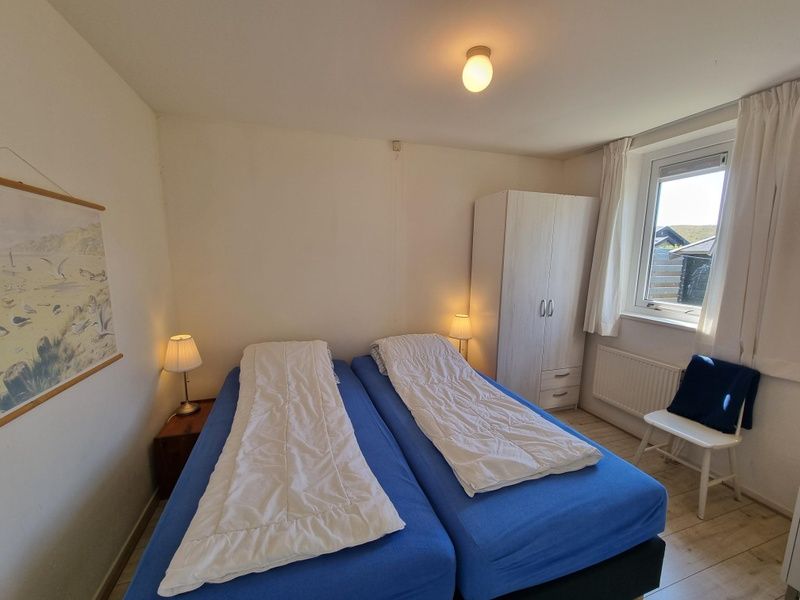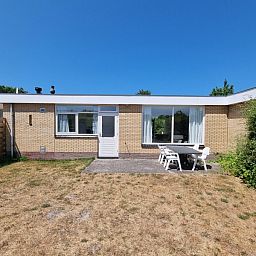 Le salon spacieux de ce bungalow mitoyen dispose d'un coin repas et d'un coin salon avec télévision. La cuisine est équipée d'un lave-vaisselle, d'un réfrigérateur-congélateur, d'une gazinière, d'un micro-ondes, d'une bouilloire et d'une cafetière. La chambre principale avec 2 lits simples (90x200) et un lavabo est accessible par le salon. La deuxième chambre est accessible par la cuisine et dispose d'un lit simple et d'un lit superposé (90x200 cm). Salle de bain avec douche, lavabo et toilettes. Par la porte coulissante du salon, on accède au beau jardin arrière orienté à l'ouest. Vous pouvez également vous asseoir devant le bungalow orienté à l'est.