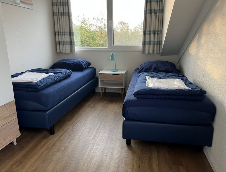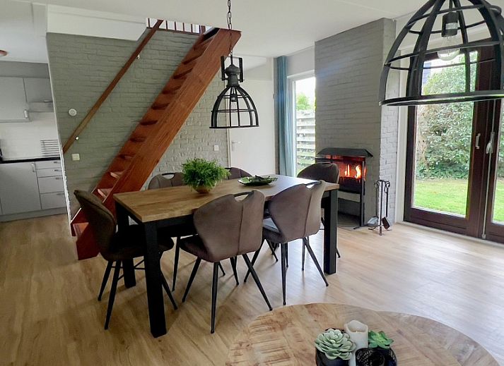 L'entrée. Vous entrez dans une salle de séjour accueillante avec un coin salon confortable avec télévision et une salle à manger spacieuse. La cuisine ouverte est entièrement équipée avec un lave-vaisselle, un micro-ondes, un réfrigérateur et une cafetière. Au rez-de-chaussée se trouve une chambre avec deux lits simples et une salle de bains avec douche, lavabo et toilettes. A l'étage se trouvent deux autres chambres, toutes deux équipées de deux lits simples. À l'extérieur, vous profiterez d'un grand jardin avec patio, équipé de meubles de jardin pour vous détendre.