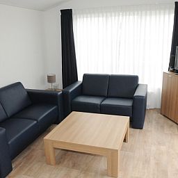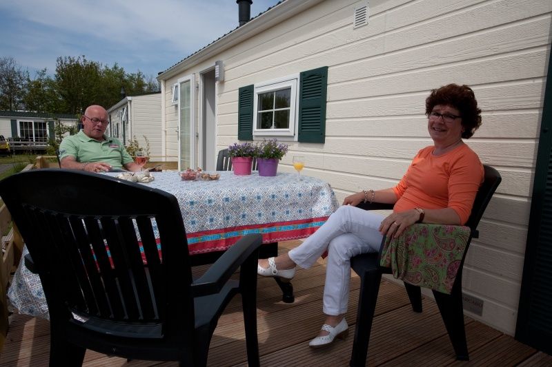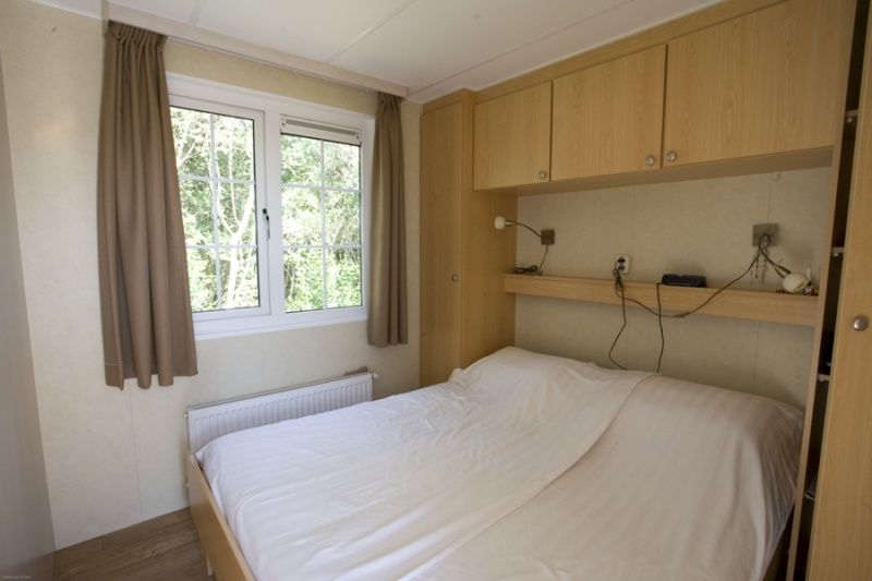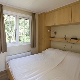 La salle de séjour de ce chalet indépendant dispose d'un coin salon avec télévision et d'un coin repas. La cuisine ouverte est équipée d'un réfrigérateur et d'un four à micro-ondes. Il y a deux chambres à coucher avec deux lits simples chacune. La salle de bains est équipée d'une douche, d'un lavabo et de toilettes. Le chalet dispose d'une véranda. Des meubles de jardin sont disponibles.