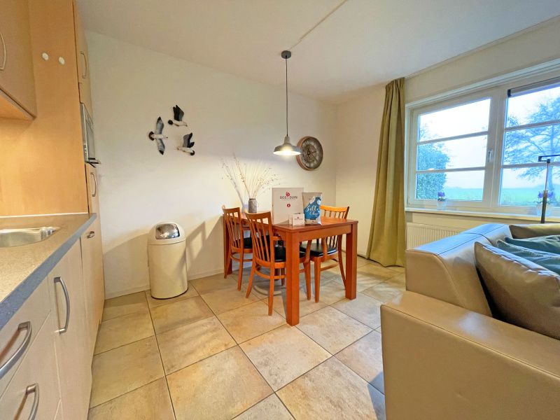 Le salon dispose d'un coin salon avec télévision et d'un coin repas. La cuisine ouverte est équipée d'un réfrigérateur, d'une machine à café, d'une machine à café Senseo, d'une bouilloire et d'un four à micro-ondes. Il y a deux chambres à coucher avec 2 lits simples chacune. La salle de bains spacieuse est équipée d'une douche avec chaise de douche et de toilettes avec supports. Un lave-linge et un sèche-linge sont disponibles. Cet appartement se trouve au rez-de-chaussée et dispose d'une terrasse spacieuse avec mobilier de jardin. La terrasse est orientée vers le sud et offre une vue sur la campagne de Texel.