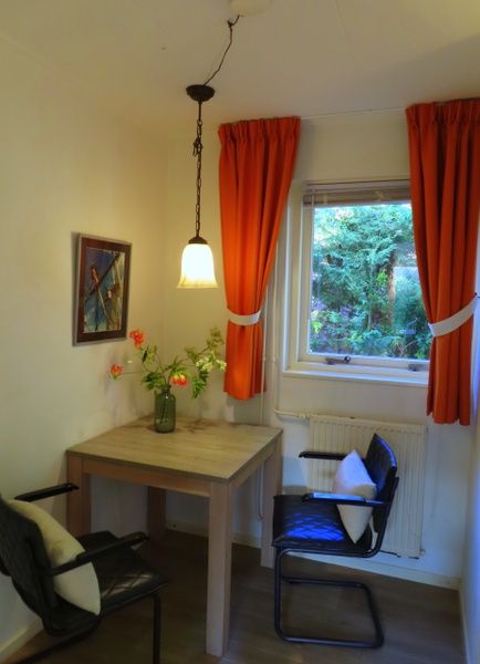 La salle de séjour dispose d'un coin salon avec télévision. La cuisine ouverte est équipée d'une cafetière et d'un Senseo, d'un réfrigérateur et d'un micro-ondes. Il y a une petite salle à manger séparée. La chambre à coucher est équipée de deux lits simples à sommier tapissier. La salle de bains est équipée d'une douche et de toilettes. Cette maison de vacances dispose d'un jardin.