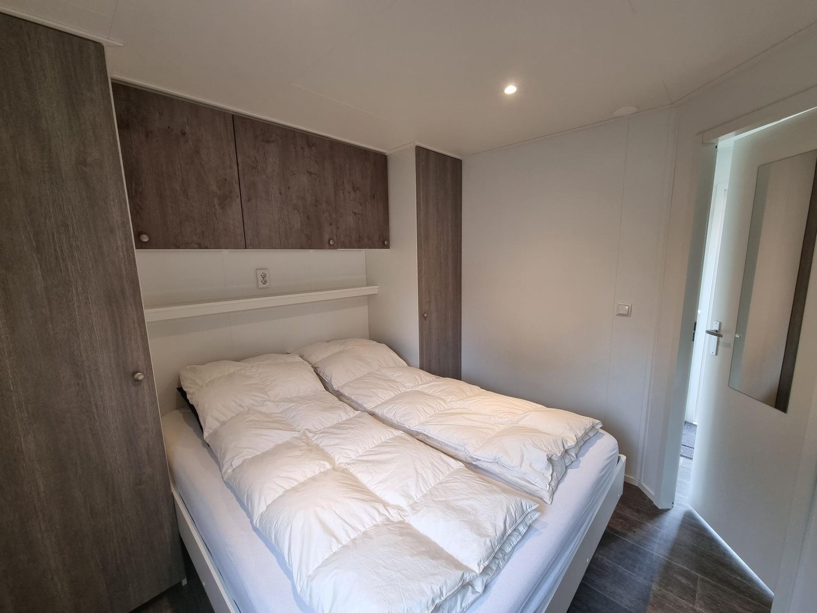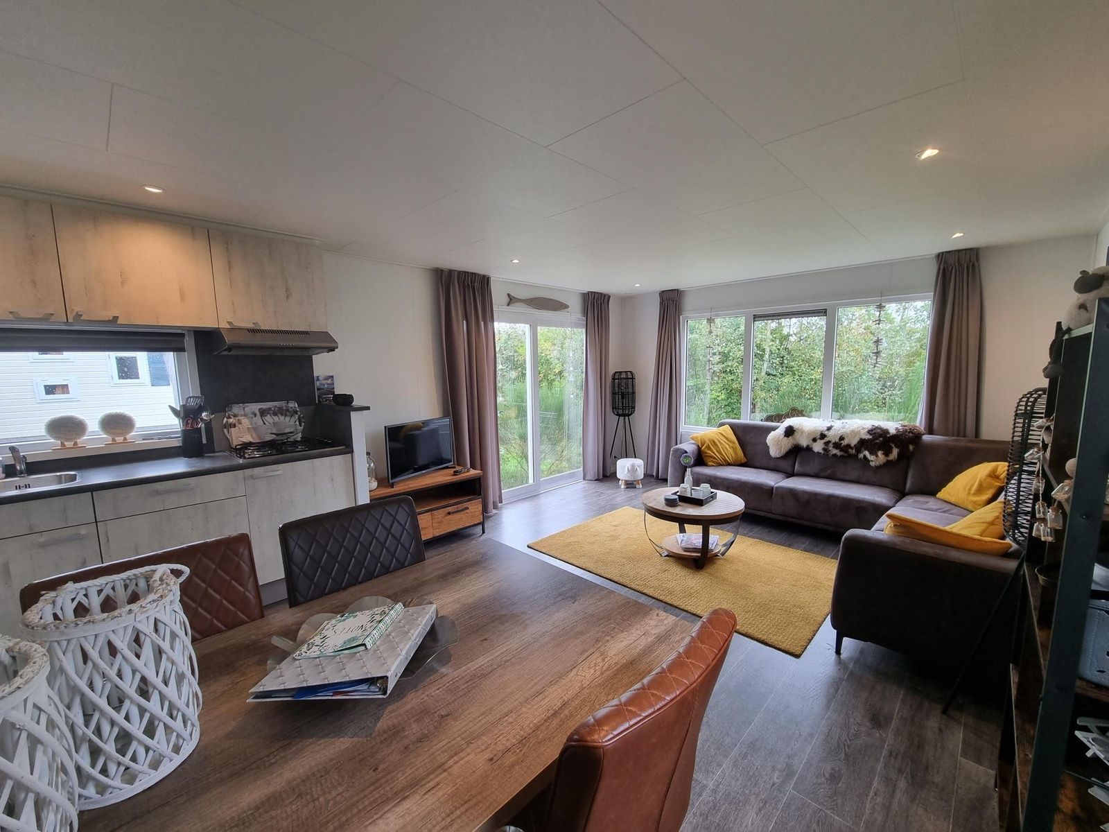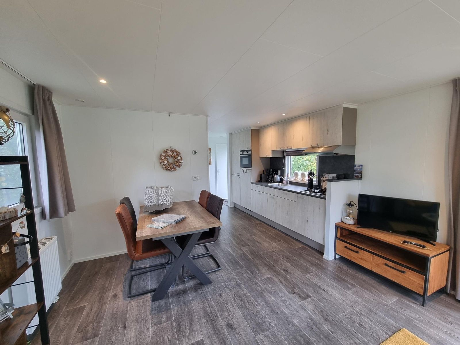 Le chalet dispose d'une salle de séjour confortable avec un coin salon spacieux doté d'une télévision et d'un haut-parleur Wi-Fi, ainsi que d'une salle à manger. La cuisine ouverte comprend un réfrigérateur-congélateur, un lave-vaisselle, un four à micro-ondes, une plaque de cuisson à quatre feux, une machine à café filtre, une machine Nespresso et une bouilloire. Il y a deux chambres à coucher, l'une avec un lit double (160 x 200 avec één matelas de 160 x 200) et deux één couettes simples. Et une chambre avec deux lits simples (80 x 200). La salle de bains est équipée d'une douche, d'un lavabo et de toilettes.