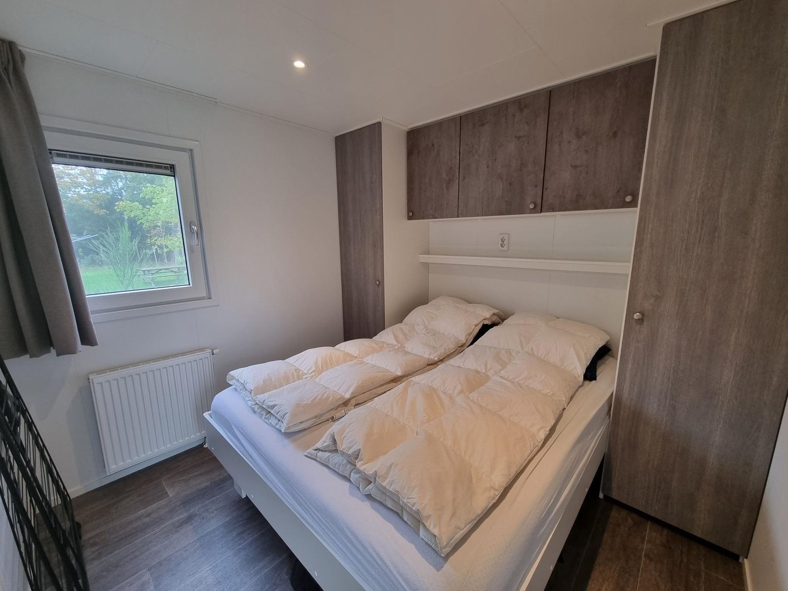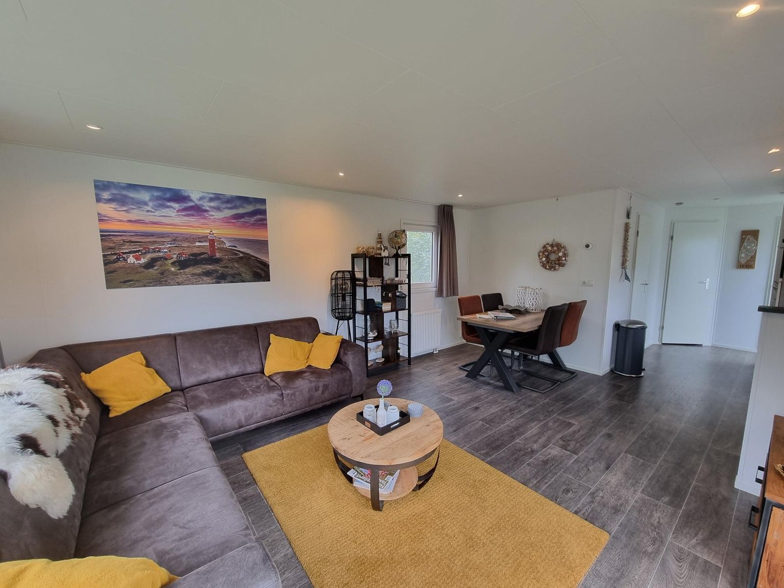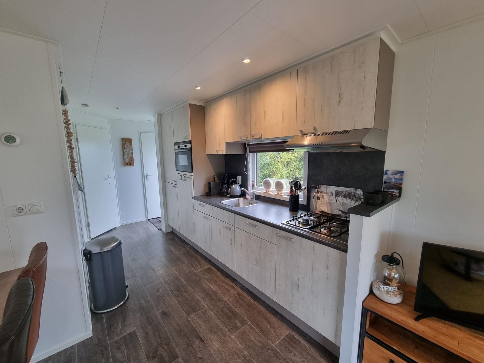 Le chalet dispose d'une salle de séjour confortable avec un coin salon spacieux doté d'une télévision et d'un haut-parleur Wi-Fi, ainsi que d'une salle à manger. La cuisine ouverte comprend un réfrigérateur-congélateur, un lave-vaisselle, un four à micro-ondes, une plaque de cuisson à quatre feux, une machine à café filtre, une machine Nespresso et une bouilloire. Il y a deux chambres à coucher, l'une avec un lit double (160 x 200 avec één matelas de 160 x 200) et deux één couettes simples. Et une chambre avec deux lits simples (80 x 200). La salle de bains est équipée d'une douche, d'un lavabo et de toilettes.