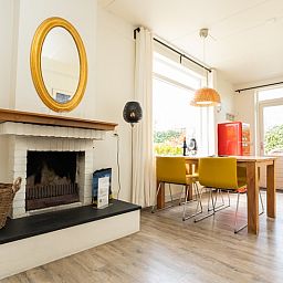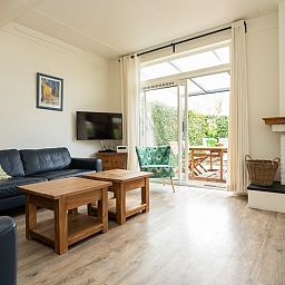 Salon spacieux et lumineux avec cheminée (apportez votre propre bois), coin repas, coin salon, télévision et lecteur DVD. La cuisine ouverte moderne est entièrement équipée, notamment d'une cuisinière à gaz à 6 feux, d'un lave-vaisselle, d'un four, d'un micro-ondes, d'une cafetière à filtre, d'une machine Senseo et d'une machine Nespresso. Une chambre est équipée d'un lit double, d'un lavabo et d'une télévision. L'autre chambre est équipée de 2 lits simples et d'une télévision. Tous les lits mesurent 2,10 m de long. Salle de bains avec douche, toilettes et lavabo. Les portes coulissantes donnent accès à la terrasse partiellement couverte et au grand jardin clos orienté sud-ouest.