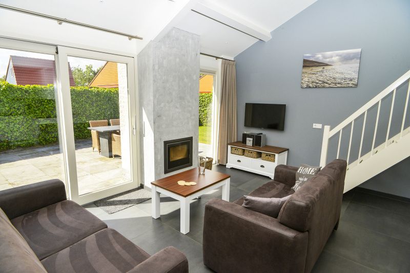 Cette grande maison de vacances indépendante dispose d'une cuisine ouverte équipée d'un micro-ondes, d'un lave-vaisselle, d'une cafetière à filtre, d'un Senseo et d'un grille-pain. La salle de séjour dispose d'un coin salon avec cheminée, télévision, radio/lecteur CD et lecteur DVD. Il y a également un coin repas. Au rez-de-chaussée se trouvent une chambre pour deux personnes et une salle de bains avec douche, lavabo et toilettes. Des toilettes supplémentaires se trouvent dans le grand hall. Dans le débarras se trouvent une machine à laver et un sèche-linge. A l'étage se trouvent deux chambres, dont éél'une avec un lit double et un lavabo. L'autre chambre dispose d'un lit simple. Cette maison de vacances dispose d'une terrasse spacieuse et d'un jardin entièrement clos avec une clôture métallique. Des meubles de jardin sont disponibles.