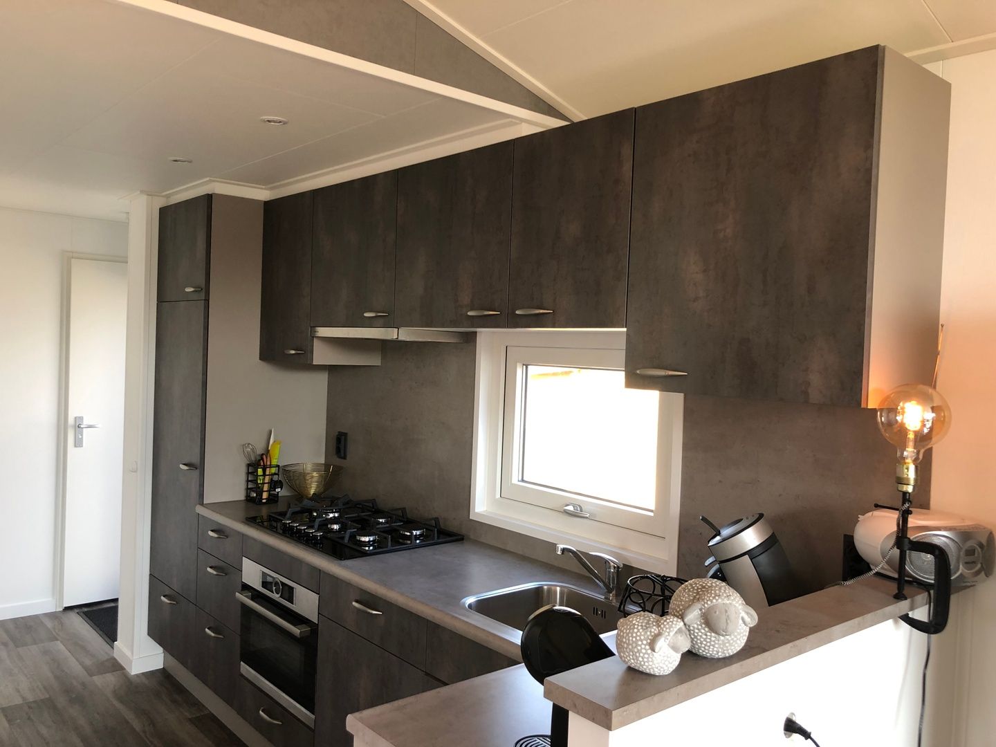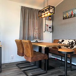 Ce chalet confortable est entièrement équipé. Le salon dispose d'un coin salon, d'une télévision et d'un coin repas. La cuisine est équipée d'un réfrigérateur-congélateur, d'un lave-vaisselle, d'un four mixte, d'une bouilloire et d'une cafetière. Il y a deux chambres à coucher. La première chambre dispose d'un lit double (160 x 200 cm) et de sa propre télévision. La couette et le matelas sont doubles. La deuxième chambre peut accueillir trois personnes. Il y a un lit superposé et un lit simple. La partie supérieure du lit superposé peut être rabattue. La salle de bains est équipée d'une douche, d'un lavabo et de toilettes. Le chalet dispose d'un jardin avec mobilier de jardin et barbecue.