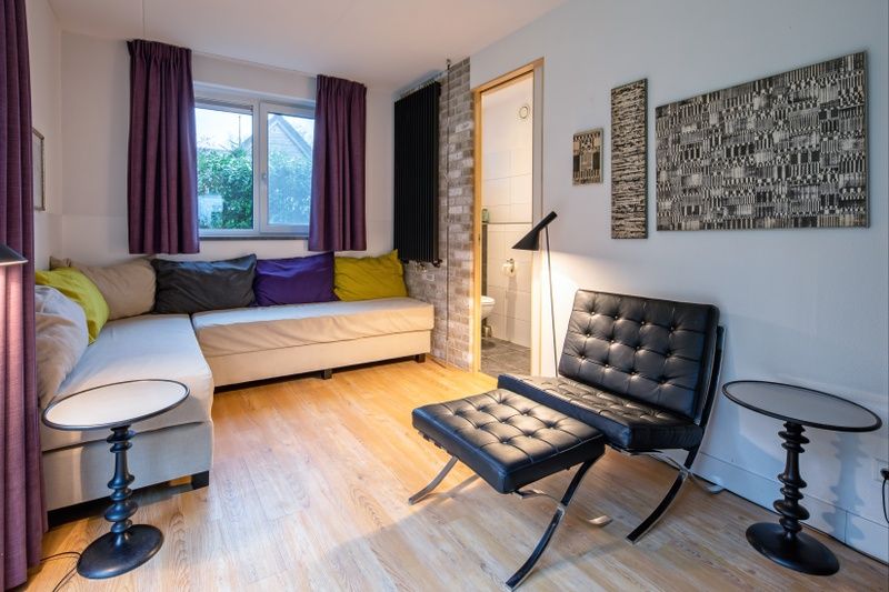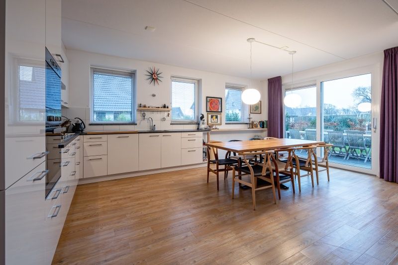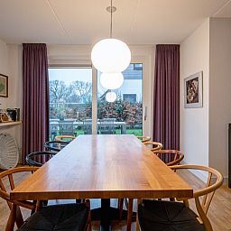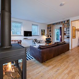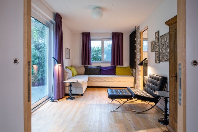 Hall d'entrée spacieux avec buanderie adjacente. Le salon, avec des portes coulissantes donnant sur la terrasse, comprend un coin salon avec une cheminée à gaz, une télévision intelligente et un haut-parleur Bluetooth. La cuisine ouverte est équipée d'une cuisinière à gaz à 5 feux, d'une cafetière à filtre, d'une machine Senseo, d'un lave-vaisselle et d'un four, entre autres. La chambre à coucher en suite avec deux lits simples à sommier tapissier (80x200) et télévision est adjacente au salon et dispose d'une télévision et d'une salle de bains privée avec douche, lavabo et toilettes. La chambre dispose de portes coulissantes donnant sur la terrasse. Pour les groupes plus restreints, cette chambre peut être aménagée en salon supplémentaire sur demande.