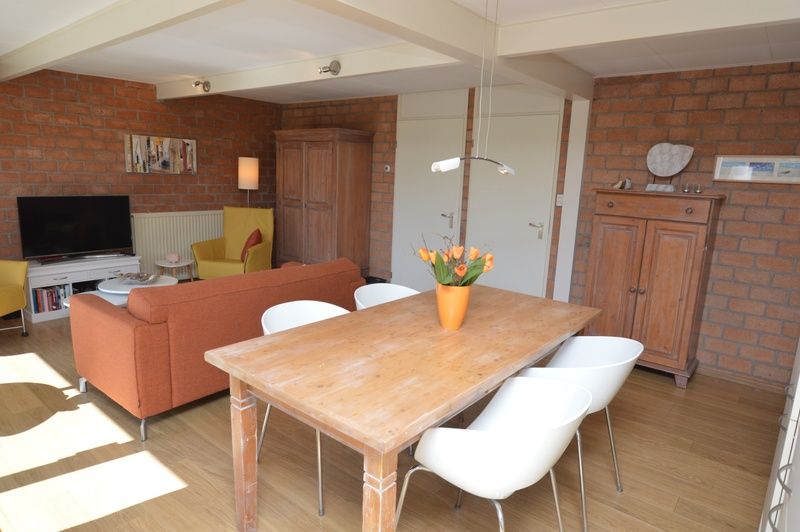 Le salon de ce bungalow mitoyen comprend une salle à manger et un coin salon avec une télévision, un lecteur DVD et une radio/lecteur CD. La télévision dispose d'un vaste bouquet de chaînes. La cuisine ouverte est équipée d'un lave-vaisselle, d'un réfrigérateur, d'un micro-ondes, d'un four, d'une cafetière Nespresso, Senseo et filtre, d'une bouilloire, d'un mixeur et d'un grille-pain. Il y a deux chambres à coucher avec deux lits simples chacune, dont la deuxième est très spacieuse. Il y a au total 4 couettes simples. À travers la chambre, une porte communicante mène à une salle familiale supplémentaire avec des portes coulissantes et des vues sur le jardin. Il y a deux salles de bains (dont une avec chauffage au sol), toutes deux avec douche, toilettes et lavabo. Ce bungalow dispose d'un grand jardin clos orienté au sud avec barbecue, terrasse, éclairage de jardin, chaises réglables et parasol. Le grand local de rangement peut accueillir quatre vélos (avec bornes de recharge), un réfrigérateur supplémentaire avec compartiment(s) congélateur(s), une chaise haute, une baignoire pour bébé et des chaises de plage.