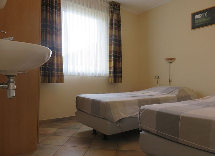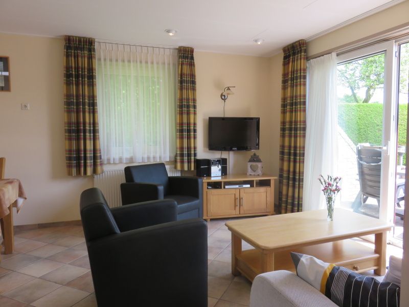 Le salon de ce bungalow mitoyen dispose d'un coin salon avec télévision à écran plat, lecteur DVD et radio/lecteur CD. Il y a également un coin repas. La cuisine ouverte est équipée d'un réfrigérateur, d'un congélateur à trois tiroirs, d'un four à micro-ondes, d'un lave-vaisselle, d'une bouilloire et d'une cafetière. Il y a deux chambres à coucher, chacune avec deux lits simples à sommier et un lavabo. La salle de bains est équipée d'une baignoire, d'une douche séparée et d'un lavabo. Les toilettes sont séparées. Ce bungalow dispose d'un jardin spacieux avec une terrasse orientée au sud. Des meubles de jardin sont disponibles.