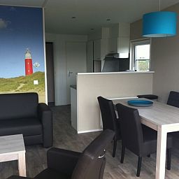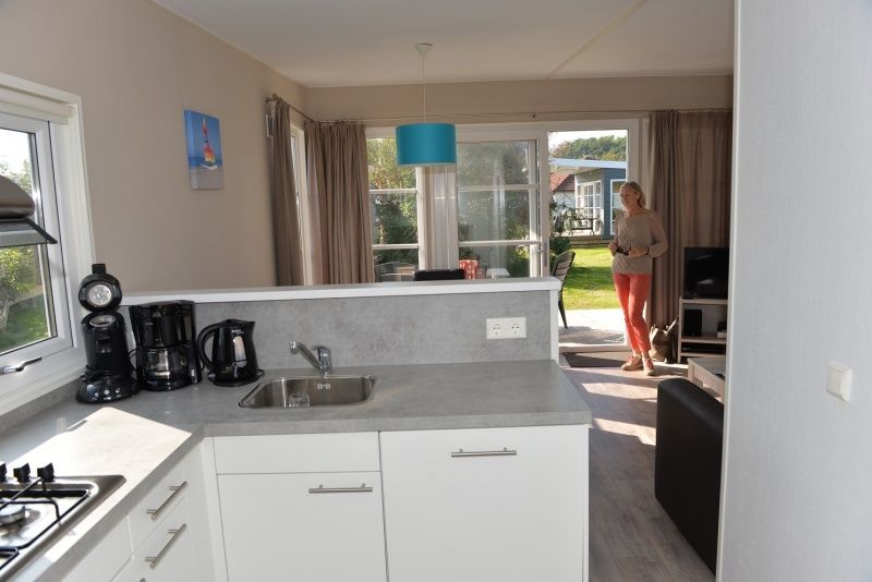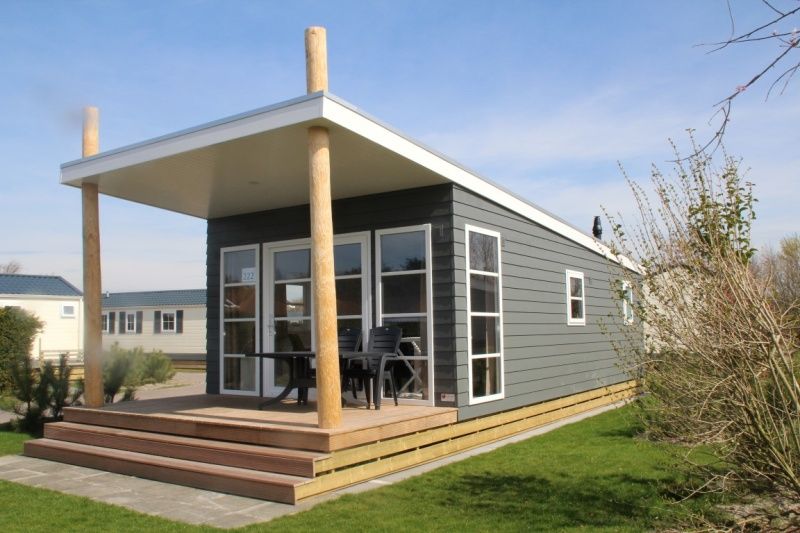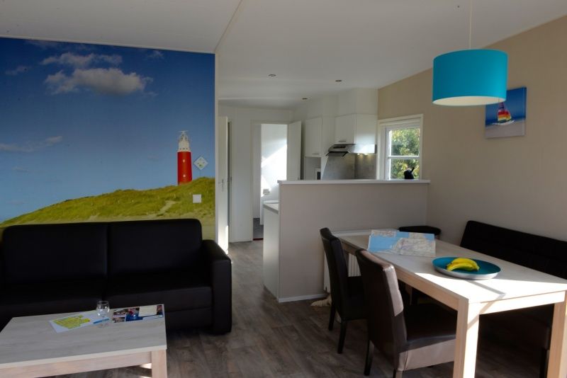 La salle de séjour de ce lodge indépendant pour 4 personnes comprend un coin salon avec télévision, radio et lecteur DVD et un coin repas. La cuisine ouverte est équipée d'une cuisinière à gaz à 4 feux, d'un micro-ondes, d'un réfrigérateur avec compartiment congélateur, d'un lave-vaisselle, d'une cafetière et d'un Senseo. Il y a deux chambres à coucher. La salle de bains est équipée d'une douche, d'un lavabo et de toilettes. Ce lodge dispose d'une véranda couverte avec des meubles de jardin. La terrasse est ensoleillée toute la journée.