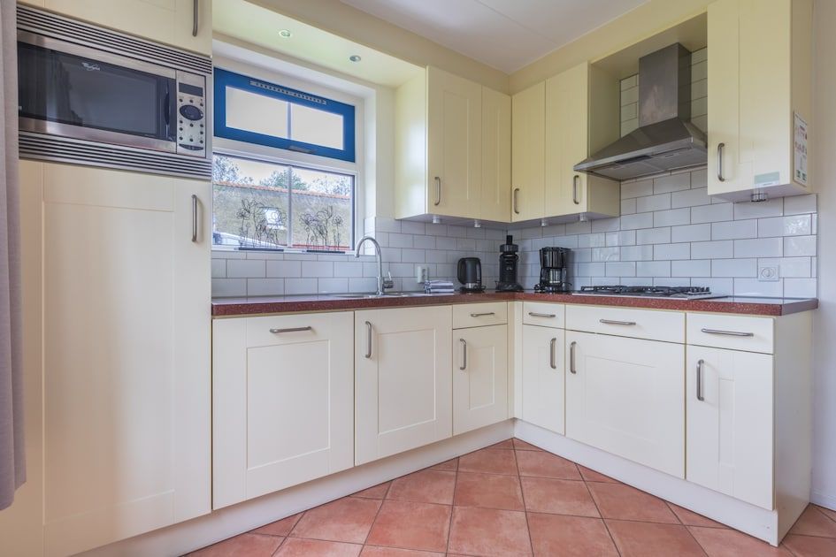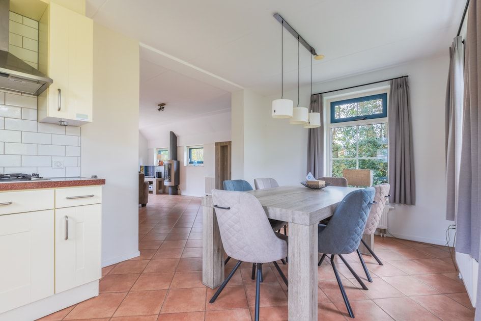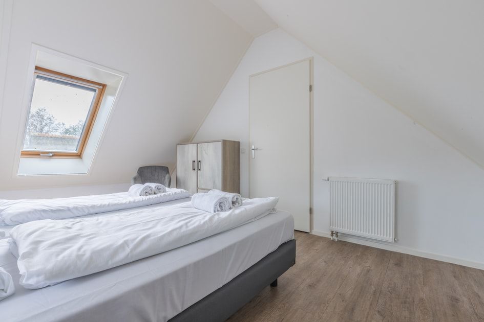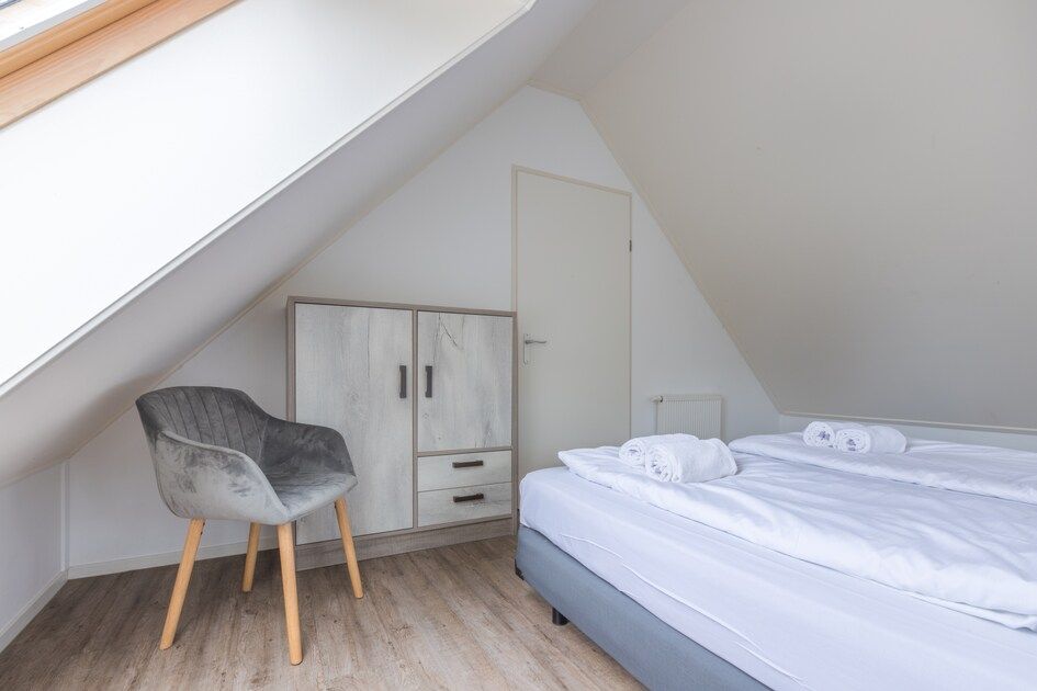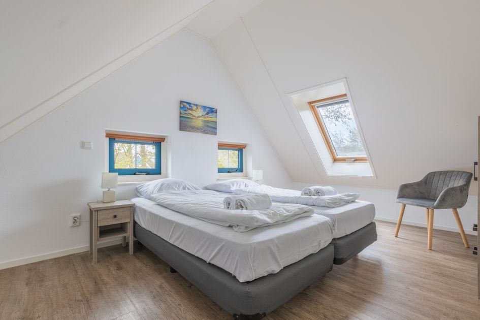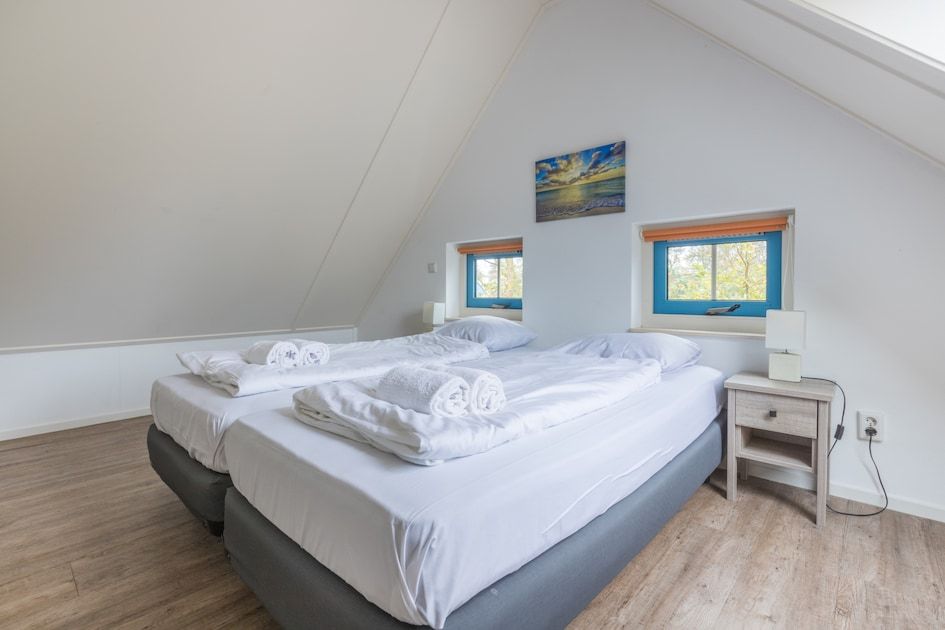 Surface d'environ 130 m². Rez-de-chaussée : séjour avec cuisine ouverte avec four à micro-ondes et lave-vaisselle. Hall d'entrée avec accès à la salle de bain avec douche. Toilettes séparées. Terrasse avec mobilier de jardin. Premier étage : deux chambres à coucher et salle de bains avec baignoire et toilettes. La disposition des chambres et des salles de bains peut varier d'un bungalow à l'autre. Certains bungalows disposent d'un sauna infrarouge. Vous pouvez indiquer le sauna infrarouge comme préférence lors de la réservation. Cette option est payante.