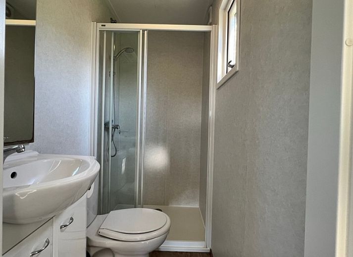 Le salon du chalet dispose d'un canapé, d'une télévision à écran plat et d'un coin repas. La cuisine ouverte est équipée d'une plaque de cuisson à 4 feux, d'un réfrigérateur avec compartiment congélateur, d'une cafetière à filtre et d'une bouilloire. Il y a deux chambres à coucher, dont une avec un lit double (140 x 200). L'autre chambre est équipée d'un lit superposé dont le lit supérieur se replie et d'un lit simple à côté. La salle de bains est équipée d'une douche, d'un lavabo et de toilettes. Le chalet dispose d'un jardin avec un abri et des meubles de jardin. Le parking se trouve juste à côté du chalet.