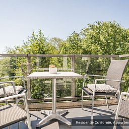 Cet appartement est situé au deuxième étage. Le salon dispose d'un coin salon avec télévision, radio et lecteur CD. La cuisine ouverte est équipée d'un four électrique à 4 feux, d'un réfrigérateur-congélateur et d'un four à micro-ondes. Il y a deux chambres à coucher avec des lits confortables et une télévision. L'une des chambres est accessible par un escalier. L'autre chambre dispose d'une douche séparée et d'un lave-linge. L'appartement dispose d'un balcon avec mobilier de jardin.