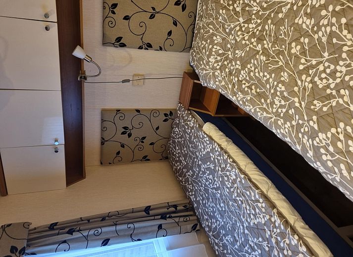 Ce chalet est relativement proche de l'entrée. Le salon dispose d'un coin salon, d'une télévision à écran plat, d'un lecteur DVD, d'une radio/lecteur CD et d'un coin repas. La cuisine ouverte est équipée d'une cuisinière, d'un réfrigérateur-congélateur, d'un lave-vaisselle, d'un micro-ondes, d'une bouilloire et d'une cafetière à filtre. Il y a trois chambres à coucher, dont une avec un lit double. Dans la deuxième chambre, il y a 2 lits simples (60 cm de large). Dans la troisième chambre, il y a 2 lits simples (70 cm de large). Couettes disponibles : 200x200 et 140x200. La salle de bains est équipée d'une douche, d'un lavabo et de toilettes. Il y a un deuxième WC. Le chalet dispose d'une terrasse abritée avec mobilier de jardin.