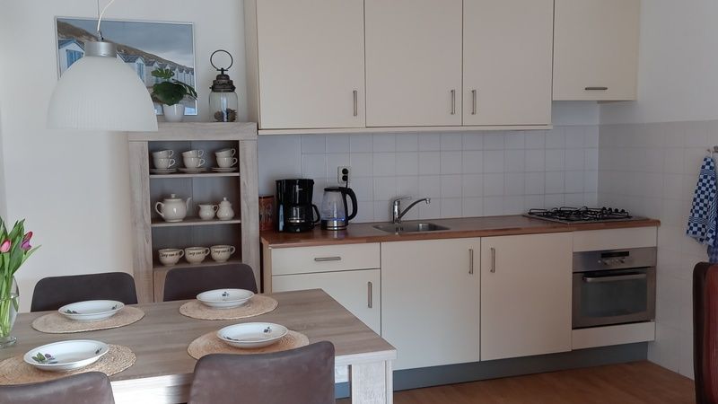 L'appartement se trouve au 1er étage du complexe d'appartements 'Résidence De Pelikaan'. L'appartement se compose d'un petit hall, d'une salle de séjour avec cuisine, d'une chambre à coucher et d'une salle de bains. La chambre à coucher est équipée de deux lits à ressorts poussés l'un contre l'autre et d'une armoire. La salle de bains est équipée d'une baignoire avec douche et de toilettes surélevées. Depuis la chambre én le salon, le grand balcon est accessible par des portes coulissantes. Le balcon avec un coin salon est situé au sud-ouest.