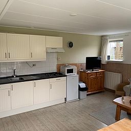 La salle de séjour de ce bungalow dispose d'un coin salon avec télévision. Il y a également un coin repas. La cuisine ouverte est équipée d'un réfrigérateur, d'un four à micro-ondes et d'une cuisinière. Il y a deux chambres à coucher, l'une avec deux lits simples et la deuxième chambre avec un lit simple. La salle de bains est équipée d'une douche et de toilettes. Ce bungalow dispose d'un jardin avec une terrasse. Des meubles de jardin sont disponibles.