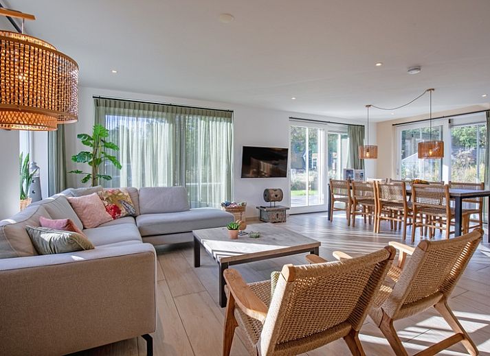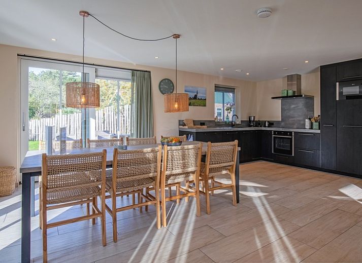 La salle de séjour spacieuse avec coin salon et cheminée chaleureuse est très lumineuse. Cuisine ouverte moderne et luxueuse avec coin repas, four, lave-vaisselle, cafetière à filtre et Nespresso. Chambre à coucher avec 2 lits simples à sommier et salle de bains avec douche à l'italienne et toilettes. Toilettes séparées. Grande buanderie avec lave-linge et sèche-linge. A l'étage, 3 chambres à coucher, chacune avec 2 lits simples à sommier tapissier. Salle de bains avec baignoire, douche à l'italienne et double lavabo. Toilettes séparées. Le palier est équipé d'une porte d'escalier. Trois portes coulissantes donnent accès à la terrasse orientée au sud et au grand jardin.