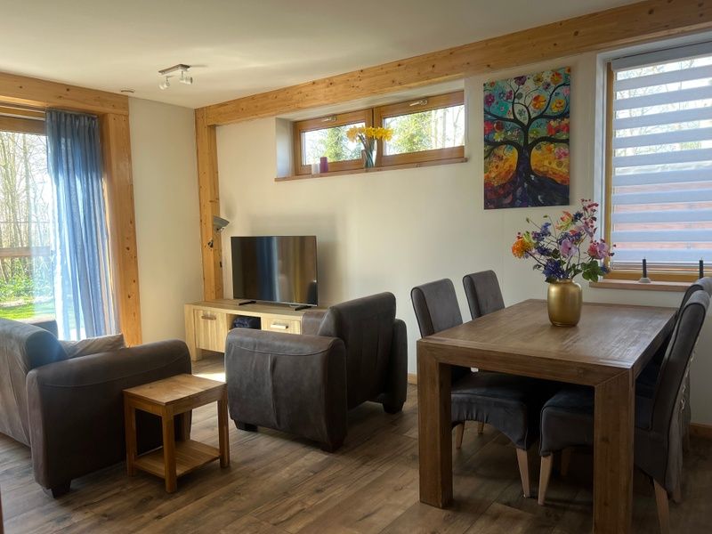Cet appartement dispose d'une salle de séjour avec un coin salon, une télévision et un coin repas. La belle cuisine ouverte est luxueusement équipée d'un réfrigérateur, d'un four combiné/micro-ondes, d'un lave-vaisselle, d'un Quooker, d'un réfrigérateur-congélateur, d'un grille-pain, d'un Senseo et d'une plaque de cuisson à induction. Deux chambres à coucher, chacune avec deux lits simples à sommier à ressorts. La grande salle de bains est équipée d'une douche à effet pluie et de toilettes. L'appartement dispose d'un jardin privé et clos. Il donne sur les écuries. Cette maison est entièrement respectueuse de l'environnement et construite avec du chanvre calcaire. Cela garantit une bonne isolation et un climat intérieur sain. Toutes les fenêtres sont équipées de moustiquaires. Vous pouvez réserver notre appartement avec één petit ou moyen chien, mais si vous avez deux petits chiens, nous ferons bien sûr volontiers une exception. Votre cheval peut également venir en vacances. Renseignez-vous sur les possibilités.