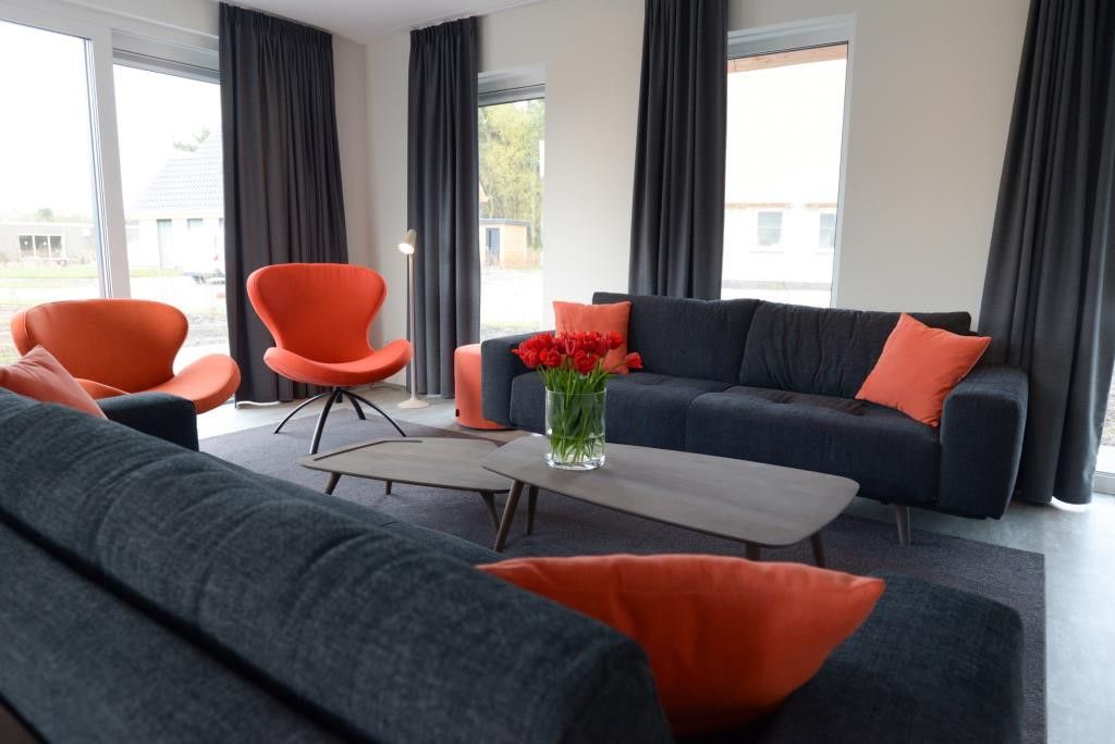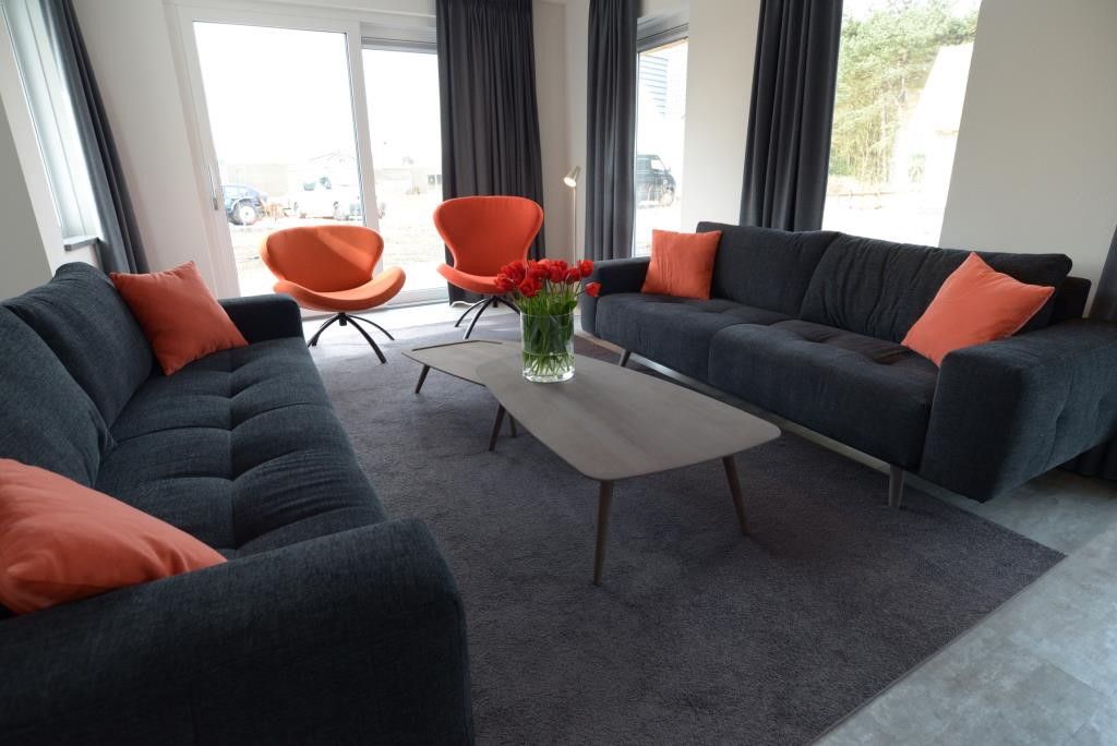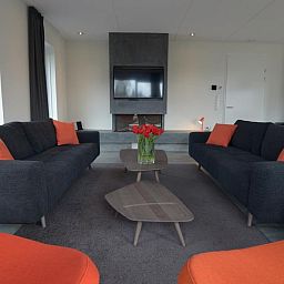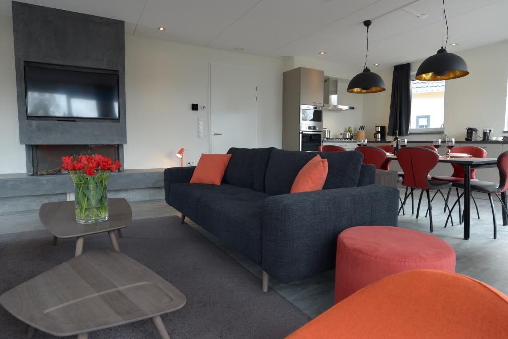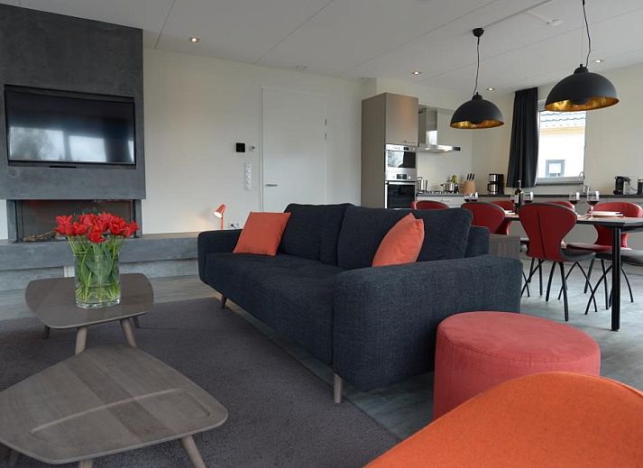 La salle de séjour lumineuse dispose de deux portes coulissantes en verre donnant accès à une terrasse spacieuse avec une table en bois dur et des bancs. Le salon et la cuisine ouverte sont décorés avec goût et modernité et sont entièrement équipés. Vous pourrez vous y détendre après un délicieux repas ou déguster un bon verre de vin ou de Texelse Skuumkoppe près de la cheminée tout en regardant votre programme préféré sur notre télévision LED Smart TV incurvée avec WiFi.