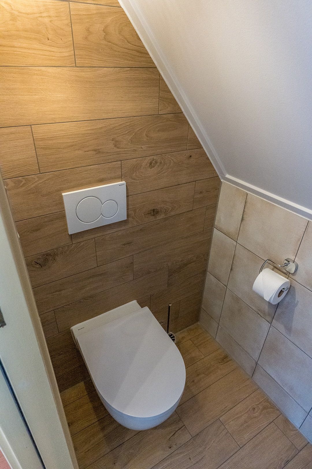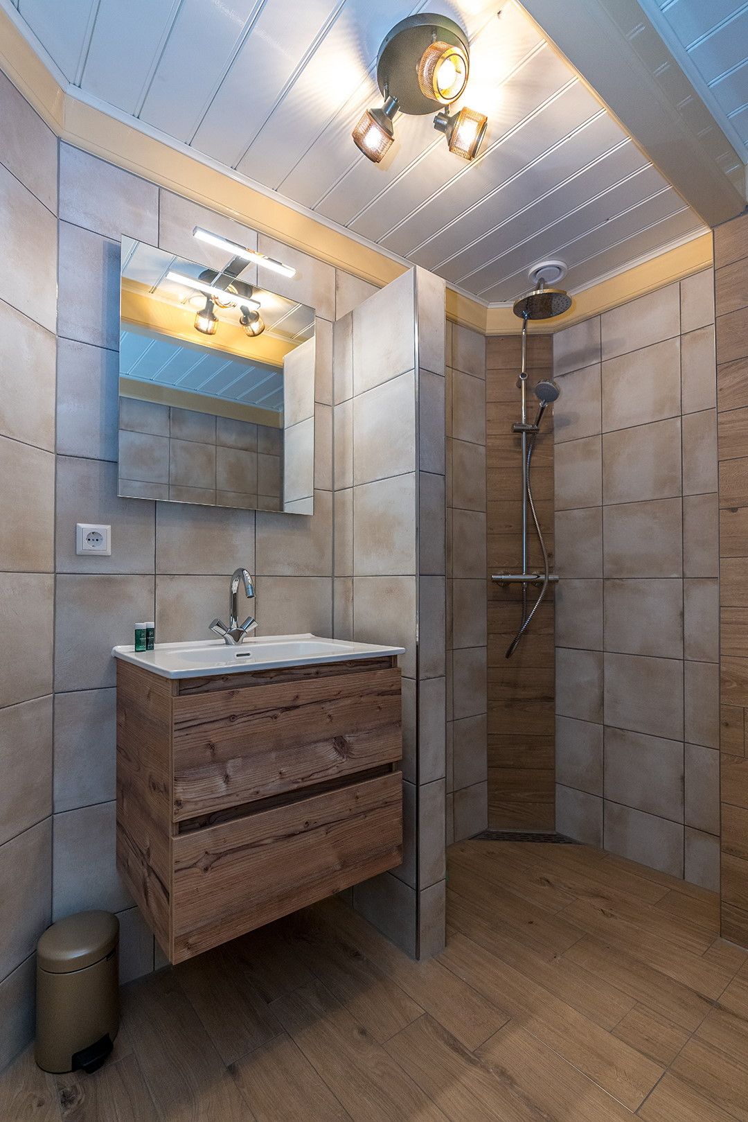 Salle de bain au rez-de-chaussée avec douche, lavabo et toilettes